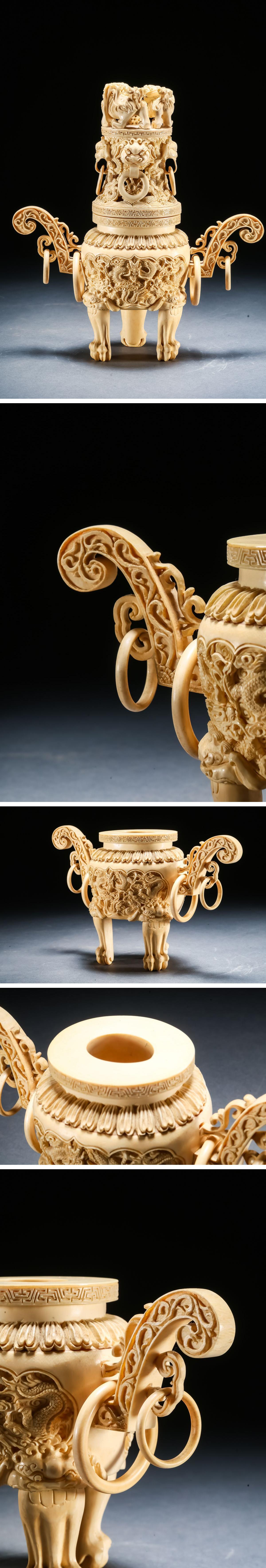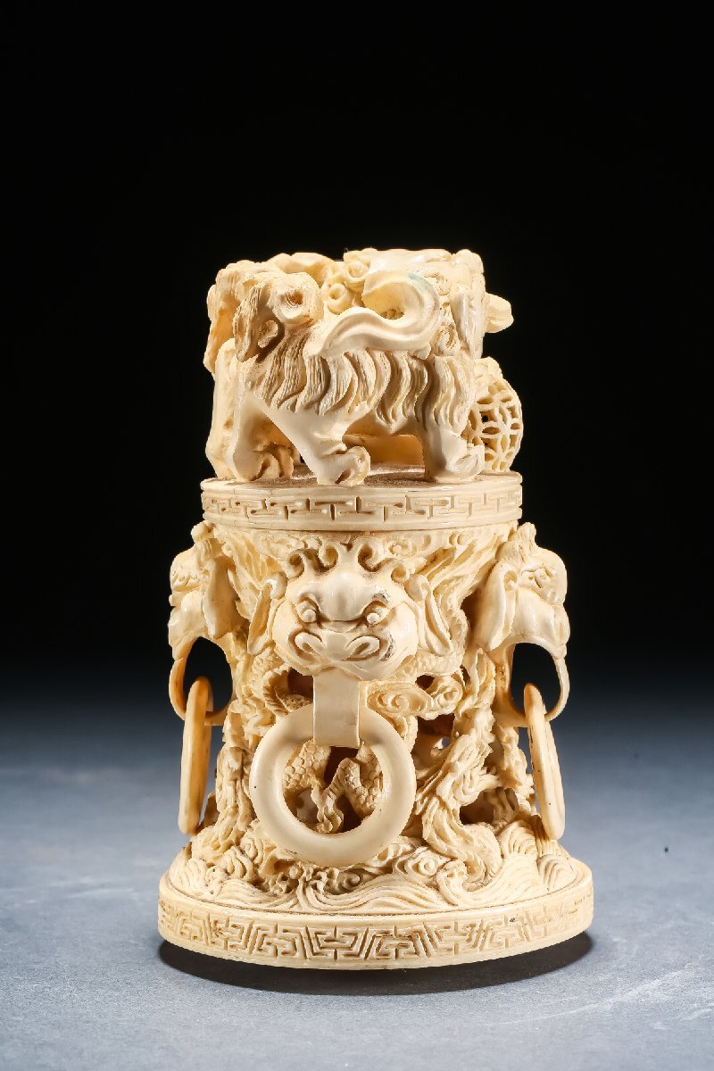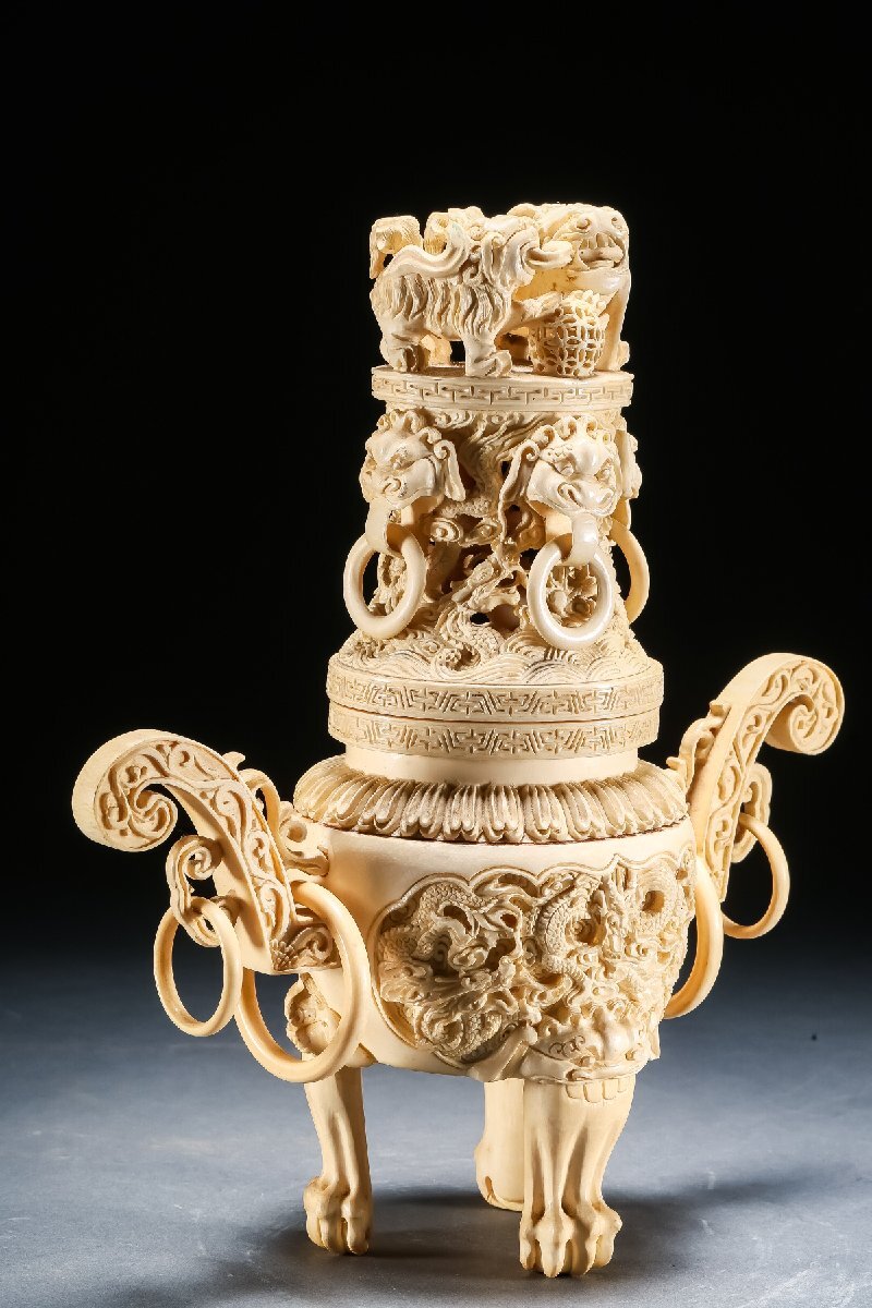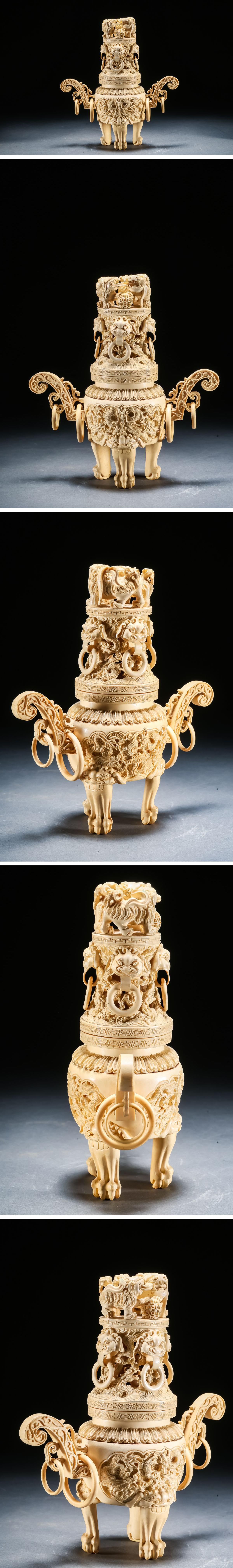 【雲錦】某有名オークション買入 時代物 特殊白材 唐獅子紋薫爐 豪華芯料使用 骨董品 古美術Z-34S6