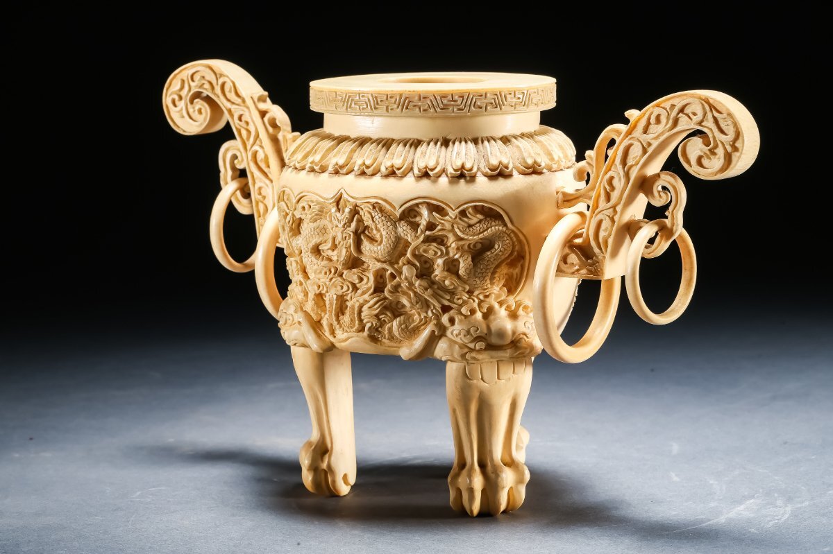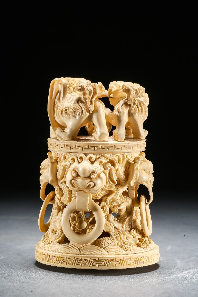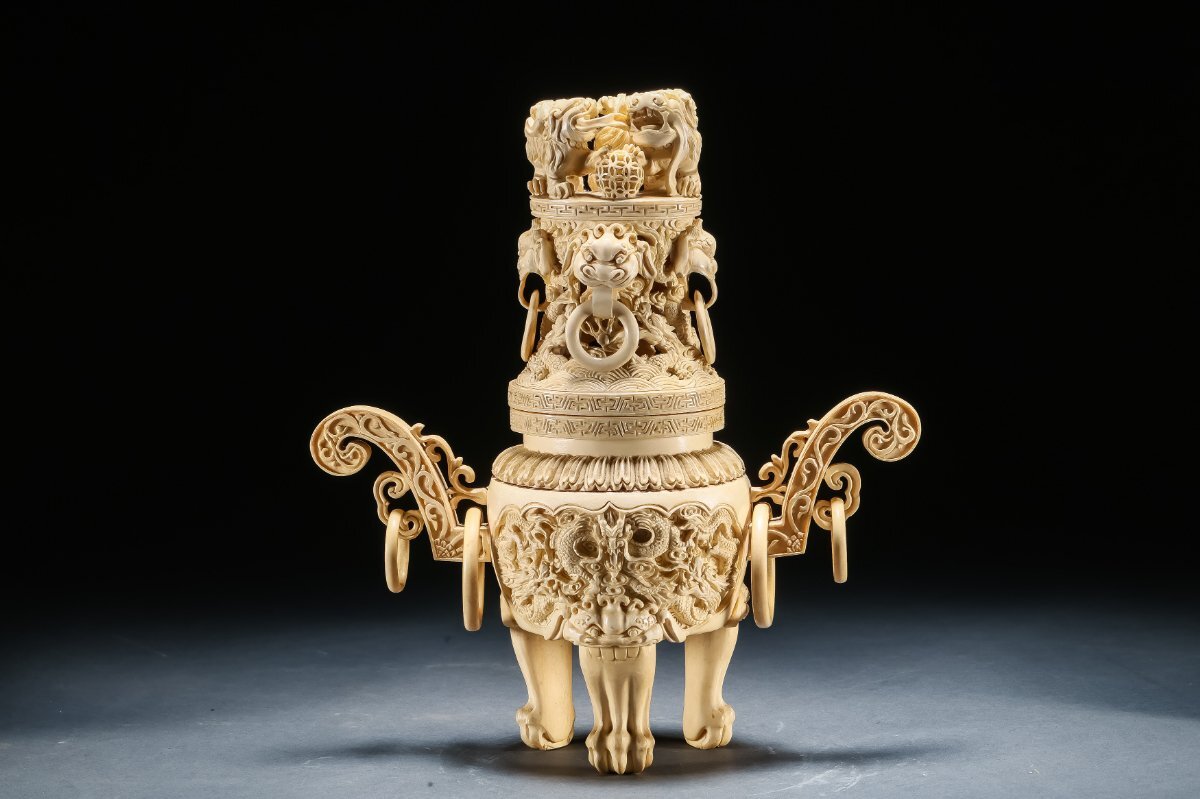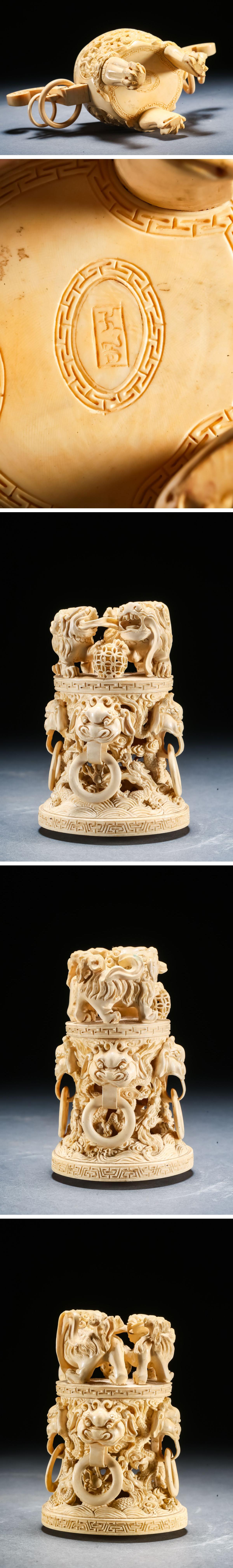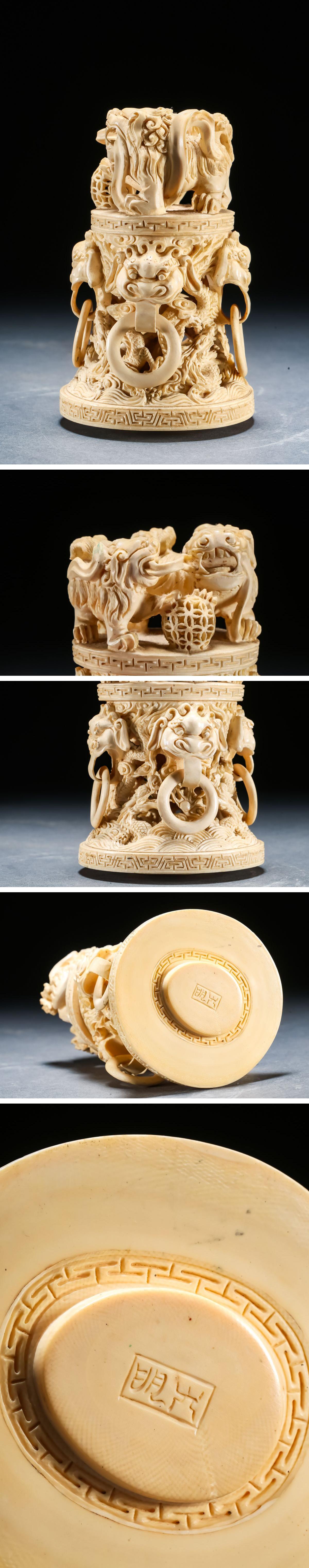【雲錦】某有名オークション買入 時代物 特殊白材 唐獅子紋薫爐 豪華芯料使用 骨董品 古美術Z-34S6
