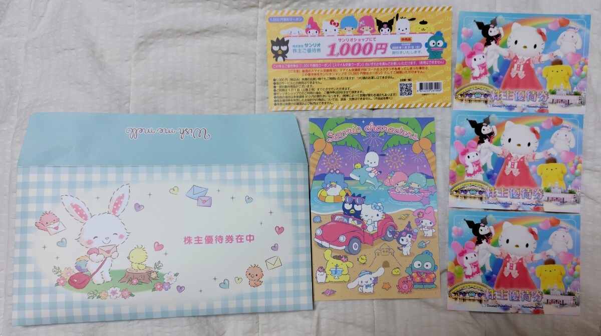 サンリオ株主優待券3枚+1000円割引券④【期限2026.1.31】ピューロランド