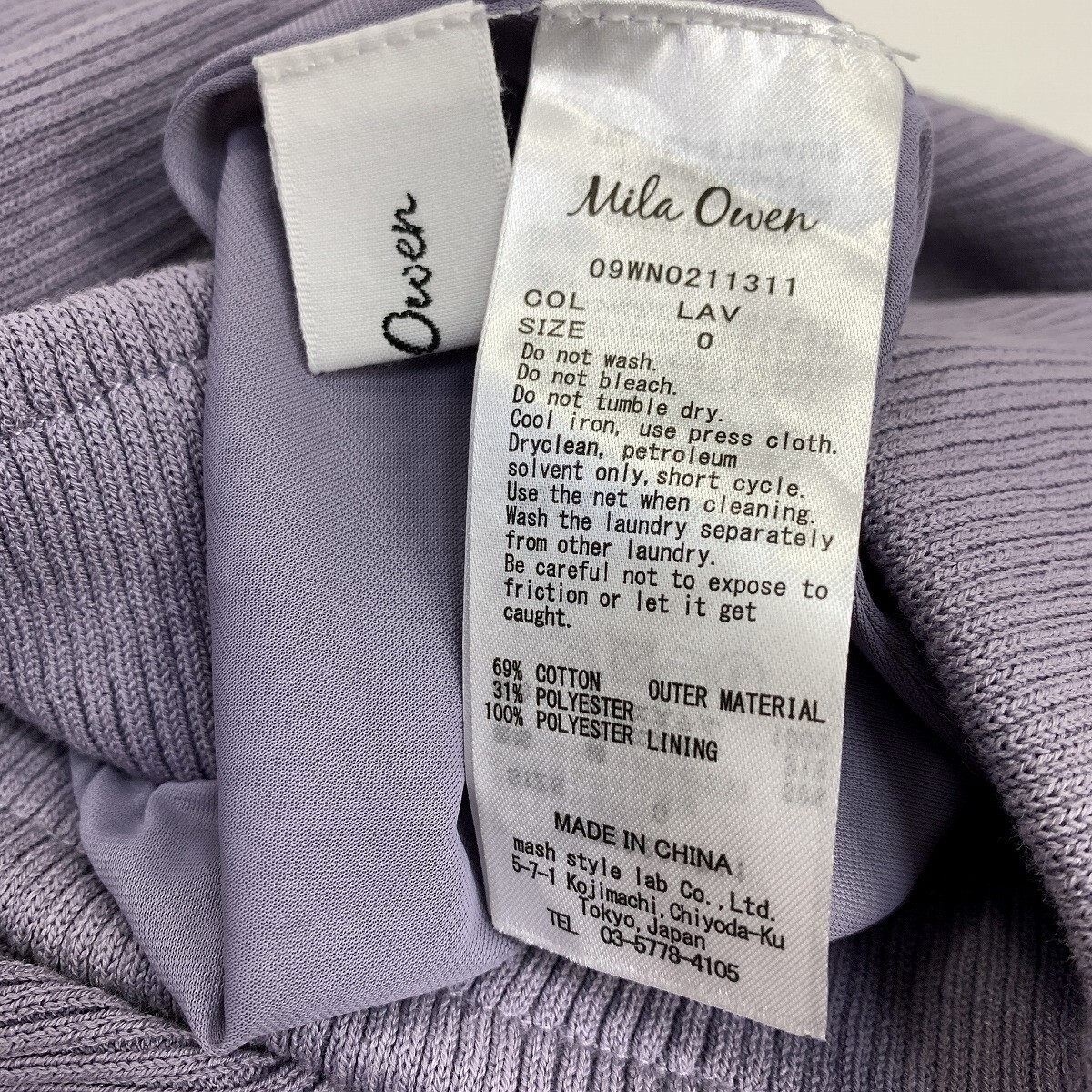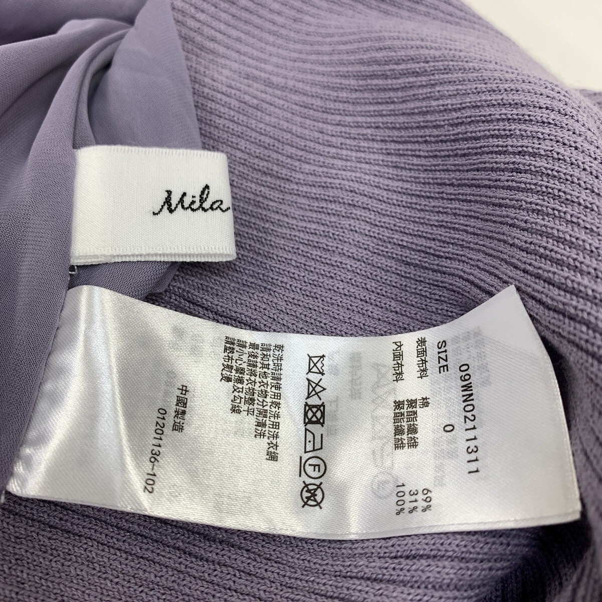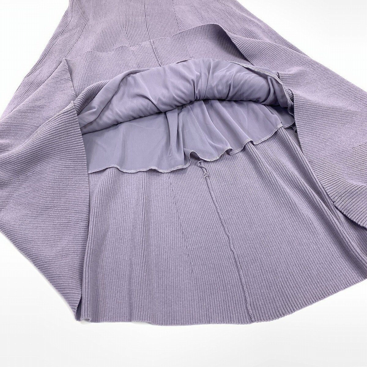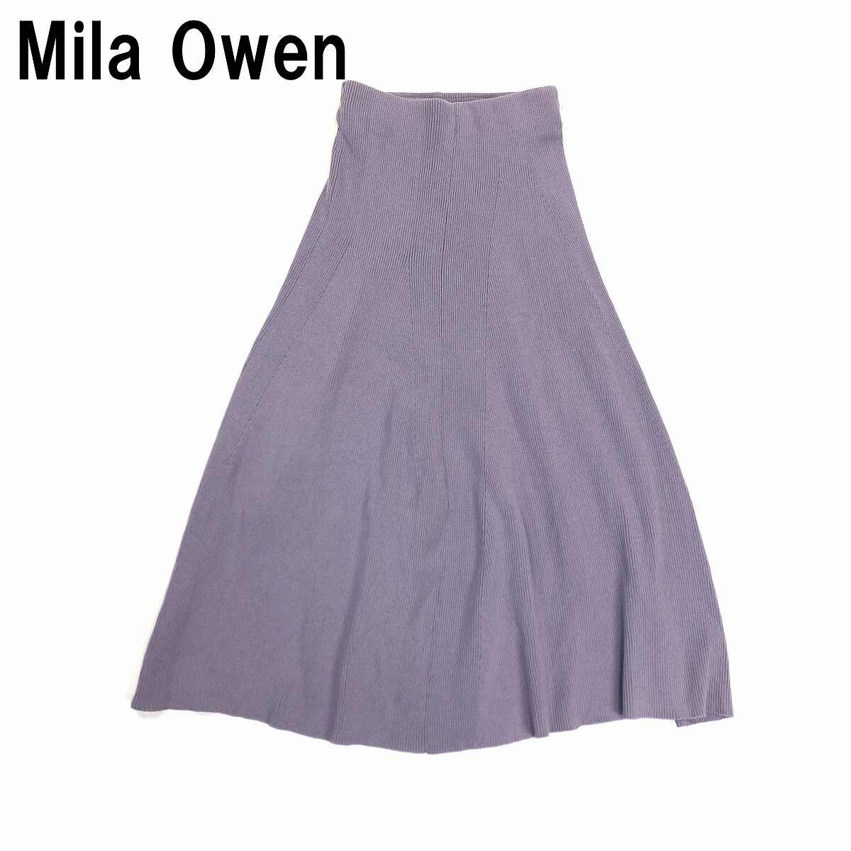 Mila Owen ミラオーウェン ロングスカート ニット 綿 コットン ウエストゴム フレア 紫 パープル 0 YC1136