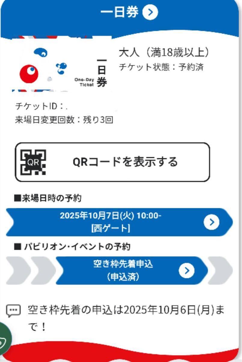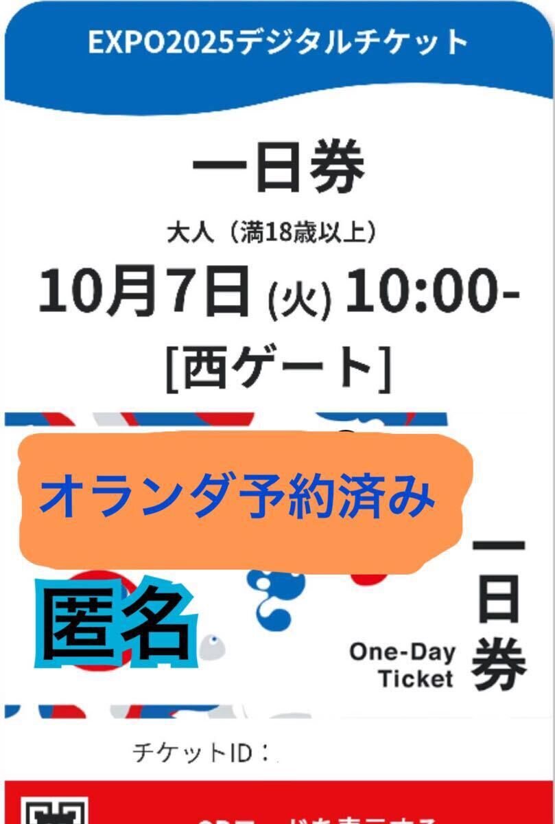 10月7日(火) 西ゲート 10時 大人 一日券【オランダパビリオン予約済み】 大阪・関西万博 チケット