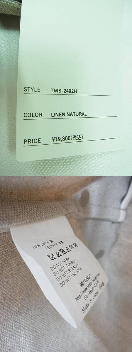 ◆正規品 未使用 新品 タグ付き TEMBEA テンベア キャンバス&レザートートバッグ TMB-2492H 麻リネン 牛革 参19800円