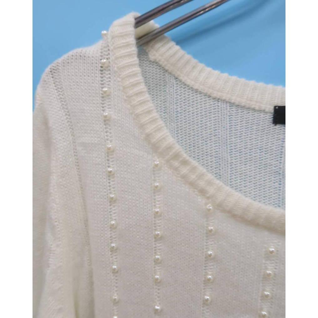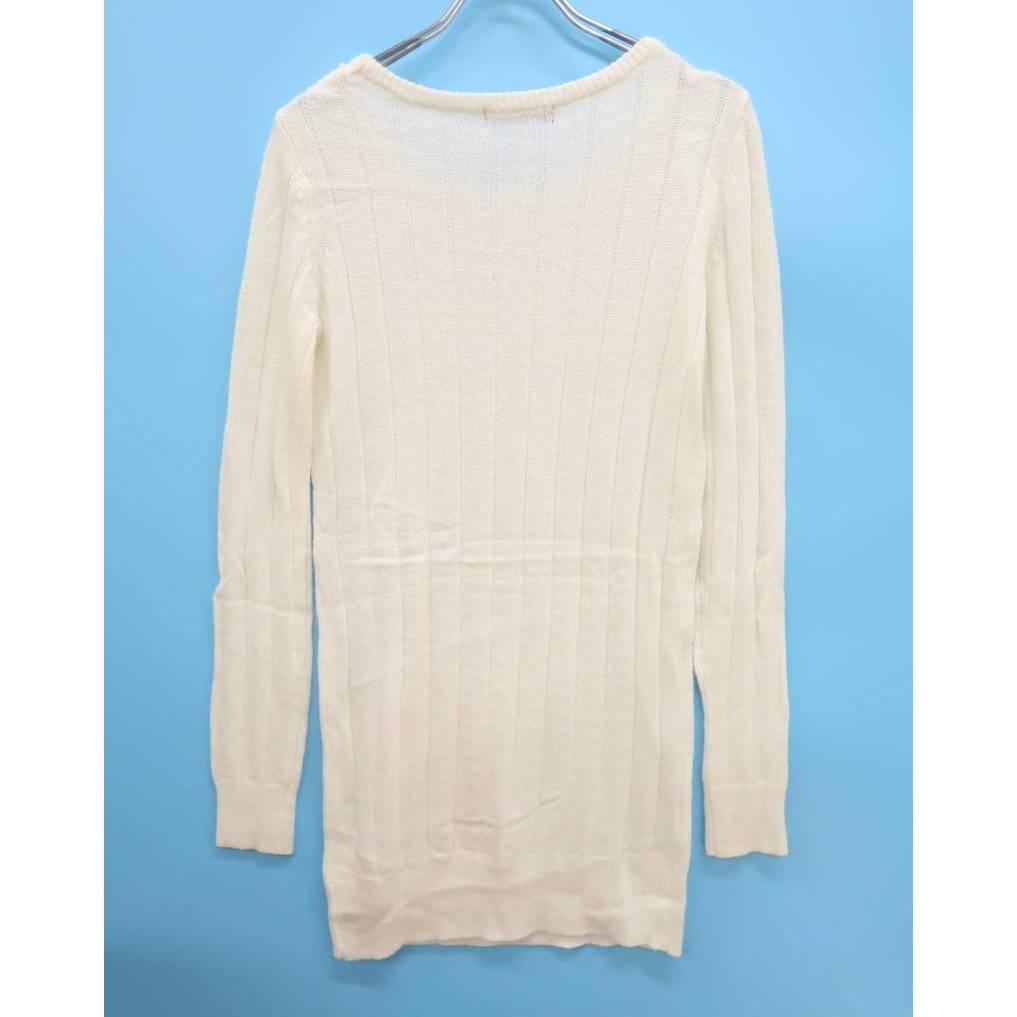 ワイドリブのニットワンピース。ニットチュニック。オフホワイト。透け感あり。