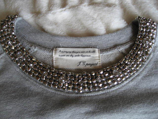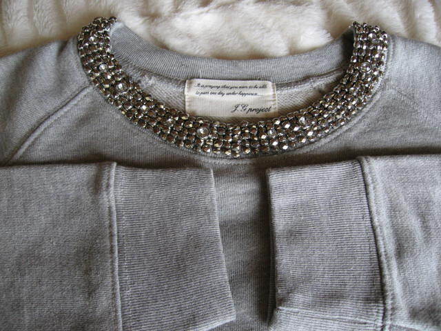 美品 ビジュー付き トレーナー スウェット グレー S コットン100 送料全国匿名配送230円~