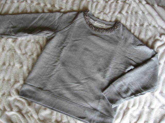 スウェットですが、ビジュー付きでキレイ目にコーデ出来ます。