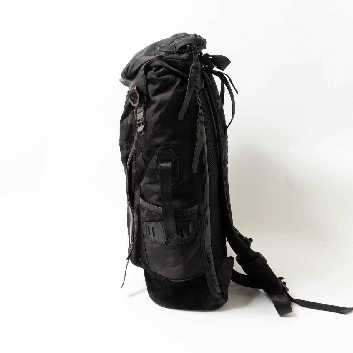 状態 | D 全体的にスレやキズ、汚れ、背面下メッシュ部分の破れ、金具のサビやメッキ剥がれ、スエード部分の毛羽立ちやスレ、色褪せ、上部ポケット裏地の経年劣化による表面剥離や粉吹き、内部の劣化臭、使用感がございます。 |