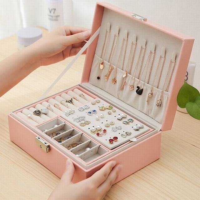 アクセサリーケース 収納ケース オシャレ ジュエリーボックス アンティーク ピアス イヤリング ネックレス 大容量ピンク