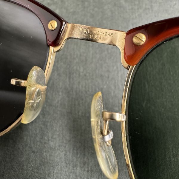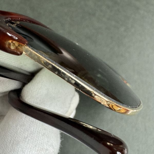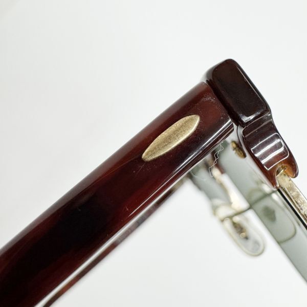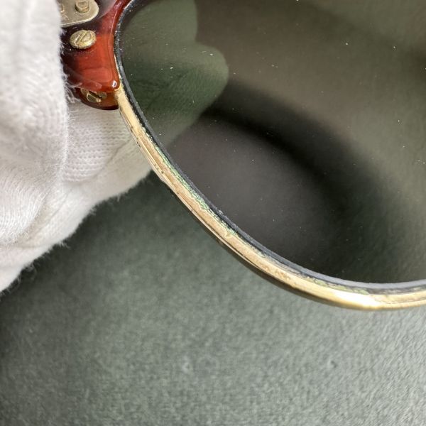 ・使用感、スレキズ、メタル部分にサビやくすみ汚れがあります。 【金具】 ・ネジがどちらもやや緩く、緑青も見受けられます。 【鼻当て】 ・汚れ、多少の変色があります。 【レンズ】 ・度無し。 ・小傷、薄汚れがあります。 前所有者に合わせた歪みや調整がある場合がございます。 レンズの度は入っていないように感じられますが、弱い度だと見落としている場合がございます。 |