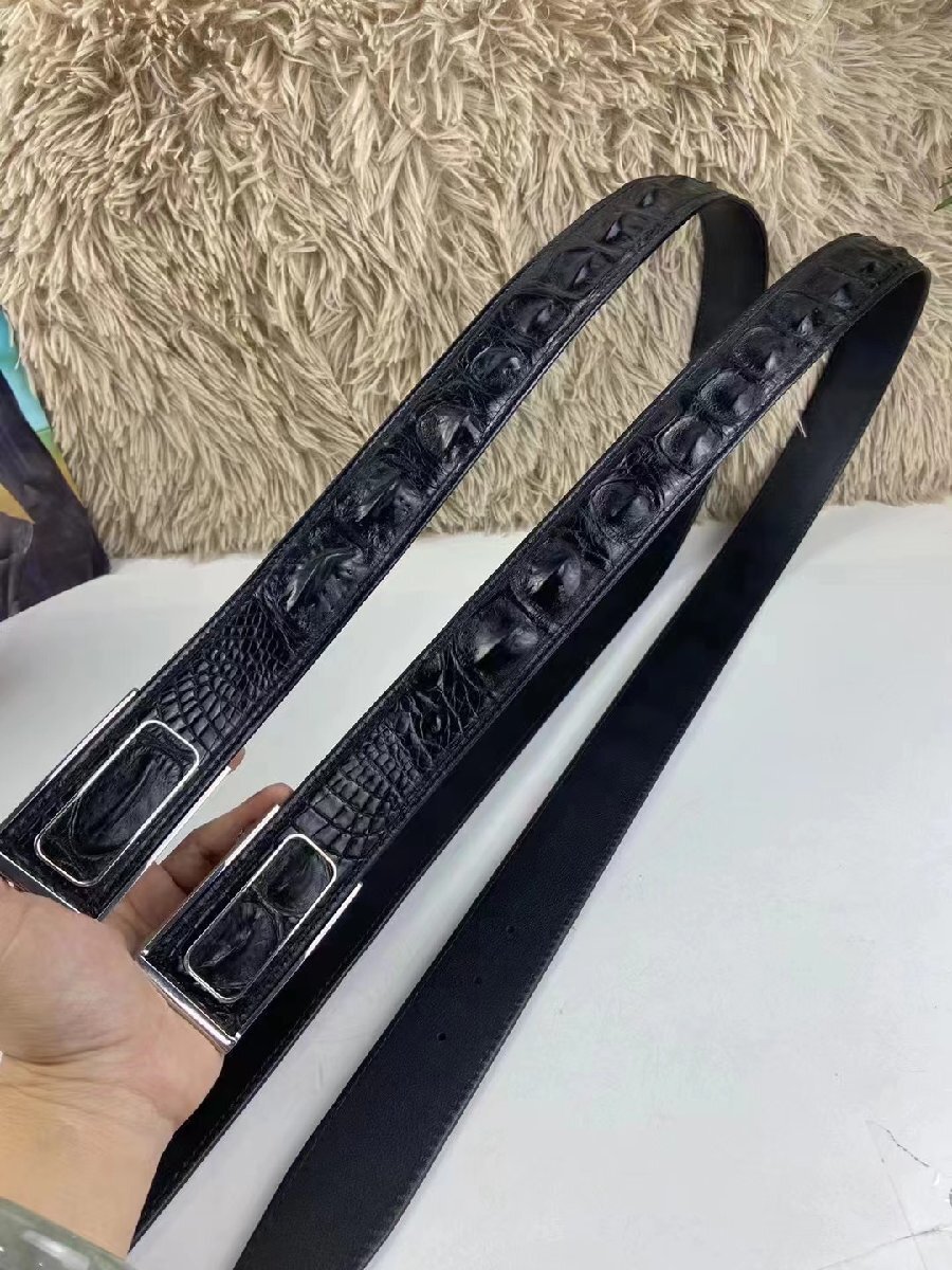 「クロコダイル」背革 一枚革 紳士用 ベルト 本物保証 ワニ革 レザーベルト 総本革 ブラック 男性用 穴あけ器付き 新品