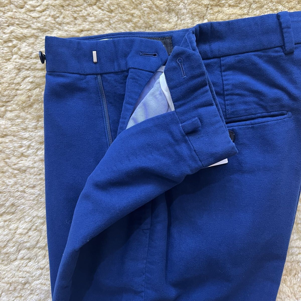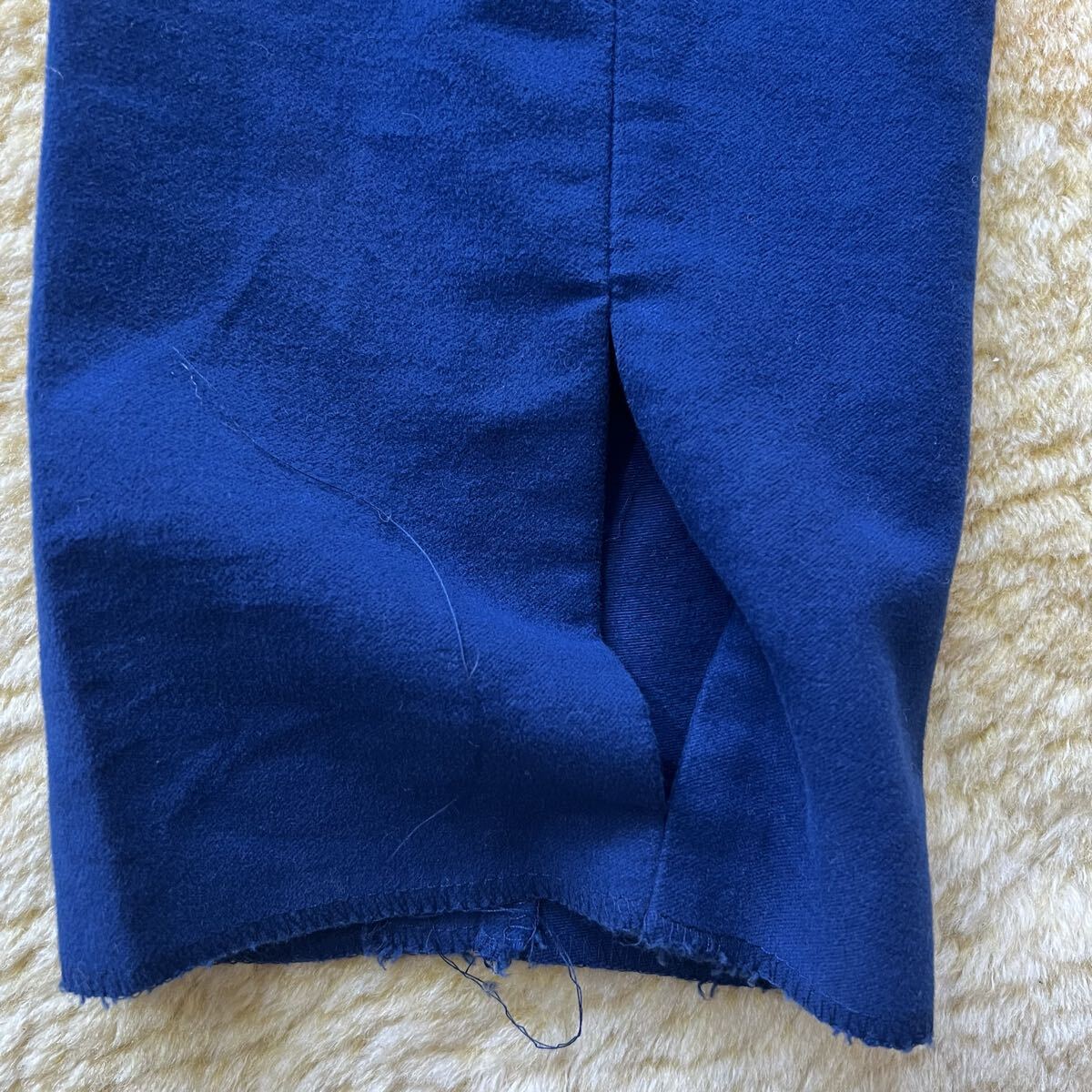 状態:新品未使用、裾部分に画像のようなほつれ部分がありますが、裾上げをすれば問題ない箇所です。