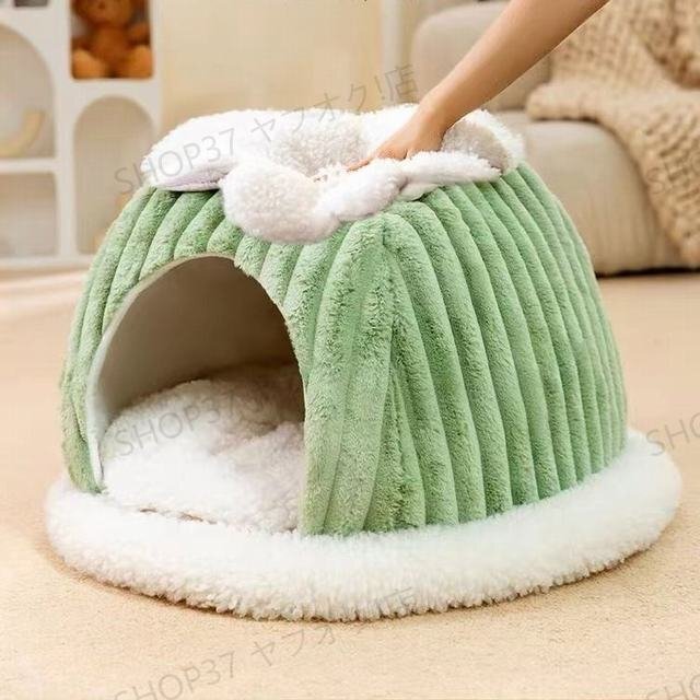 猫や小型犬に適した居心地のペットベッドです。ペットが楽に出入りできるようにデザインしております。
