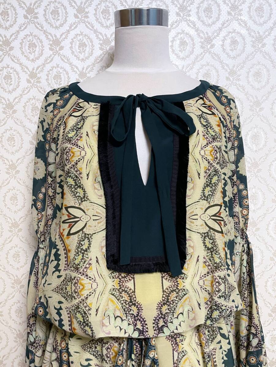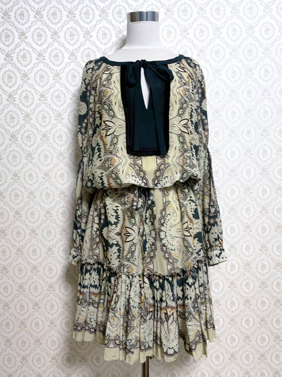 ETRO エトロ グリーン柄物ワンピース 緑色