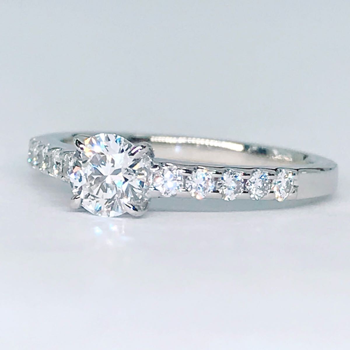 ミキモトが厳選した上質な0.303ctのダイヤモンドをセンターにセッティングした、エタニティデザインの上品なリングです。