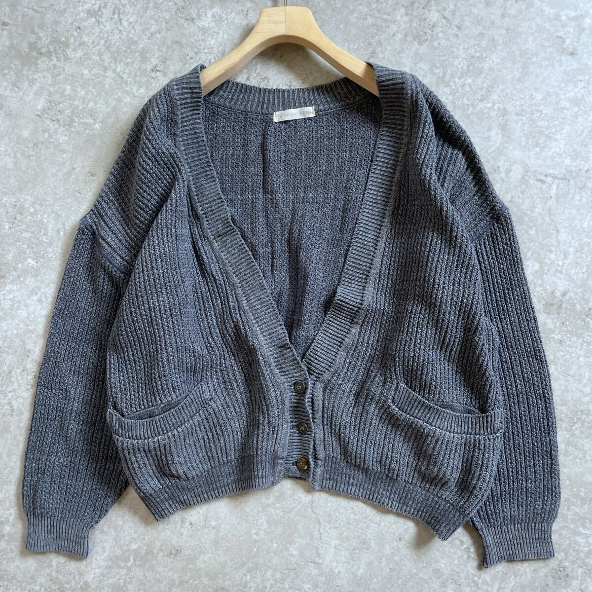 JURGEN LEHL ヨーガンレール カーディガン 綿麻 長袖 Vネック ブルーグレー ゆったり