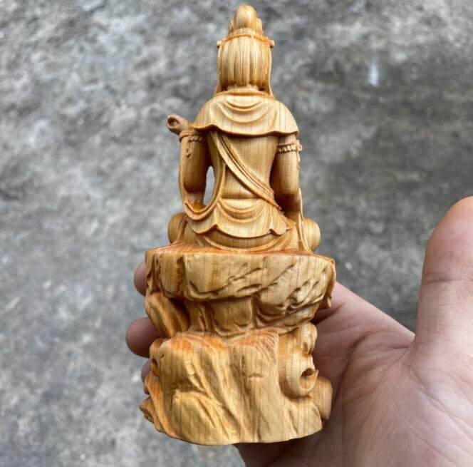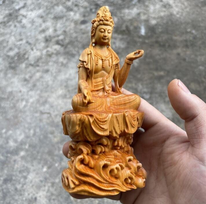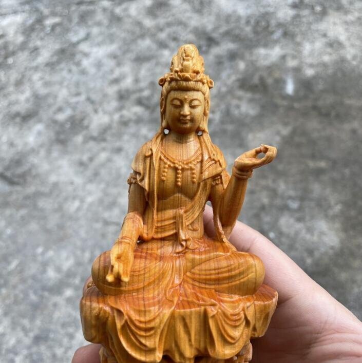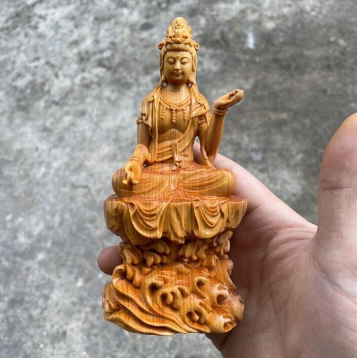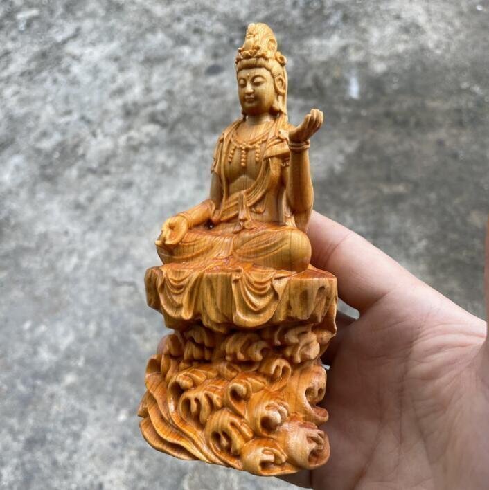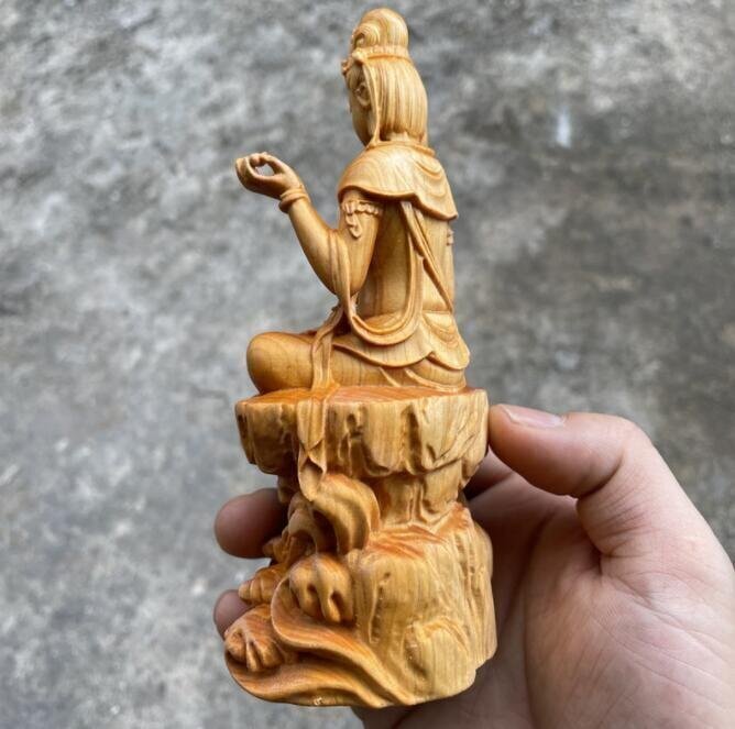 極上質 木彫 開運風水 観音像 ッゲ 彫刻工芸品 高級天然 ツゲ木彫り 風水グッズ 贈り物