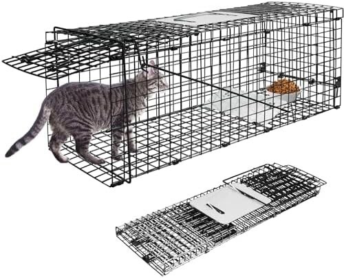 Eastbury 捕獲器 踏み板式 トラップ 動物用 66×26×23cm 猫保護器 野良猫 迷子猫 保護カゴ 小動物 捕獲カゴ 害獣駆除 農業作物保護 組み立て簡単 設置 ねこ 猫 イタチ ケージ 安全 保護かご 野良猫 折り畳み 捕獲器 畑 庭 家庭菜園 農業作物保護 (ブラック)