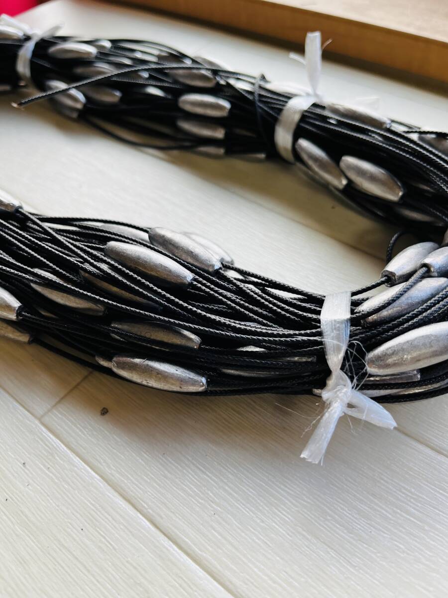 サワラ、ハマチなどのとローリング用のビショマです。よつあみスーパートップ50号50m(総重量2.03kg)鉛2号250個を20cm間隔で打ってます。発送はレターパックライト430円又はレターパックプラス全国一律600円(配達先へは対面で届け、受領印又は署名を要する。不在の場合は、不在配達通知書を差し入れた上で、配達を行う郵便局へ持ち戻る。)なります。その他の発送方法で、佐川急便での、対応も致します。できましたらメッセージ欄にて電話番号お知らさしてください。発送は木曜日以外の出荷になります。商品1人で手作りしている為注文が重なっている場合お日にちをいただく事もございますがご了承ください。