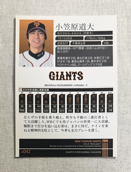 BBM YOMIURI GIANTS 2009 G042 パラレル 小笠原道大 読売ジャイアンツ/読売巨人軍 |