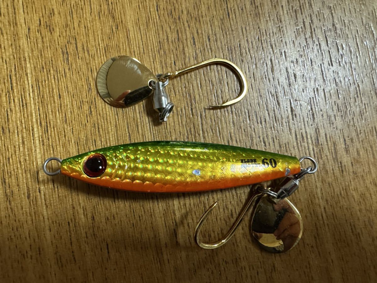 画像のものが出品物となります。タックルボックスに入れて釣行へ行きましたが使用しませんでした。おまけとして新品のブレード付フックをお付けします。