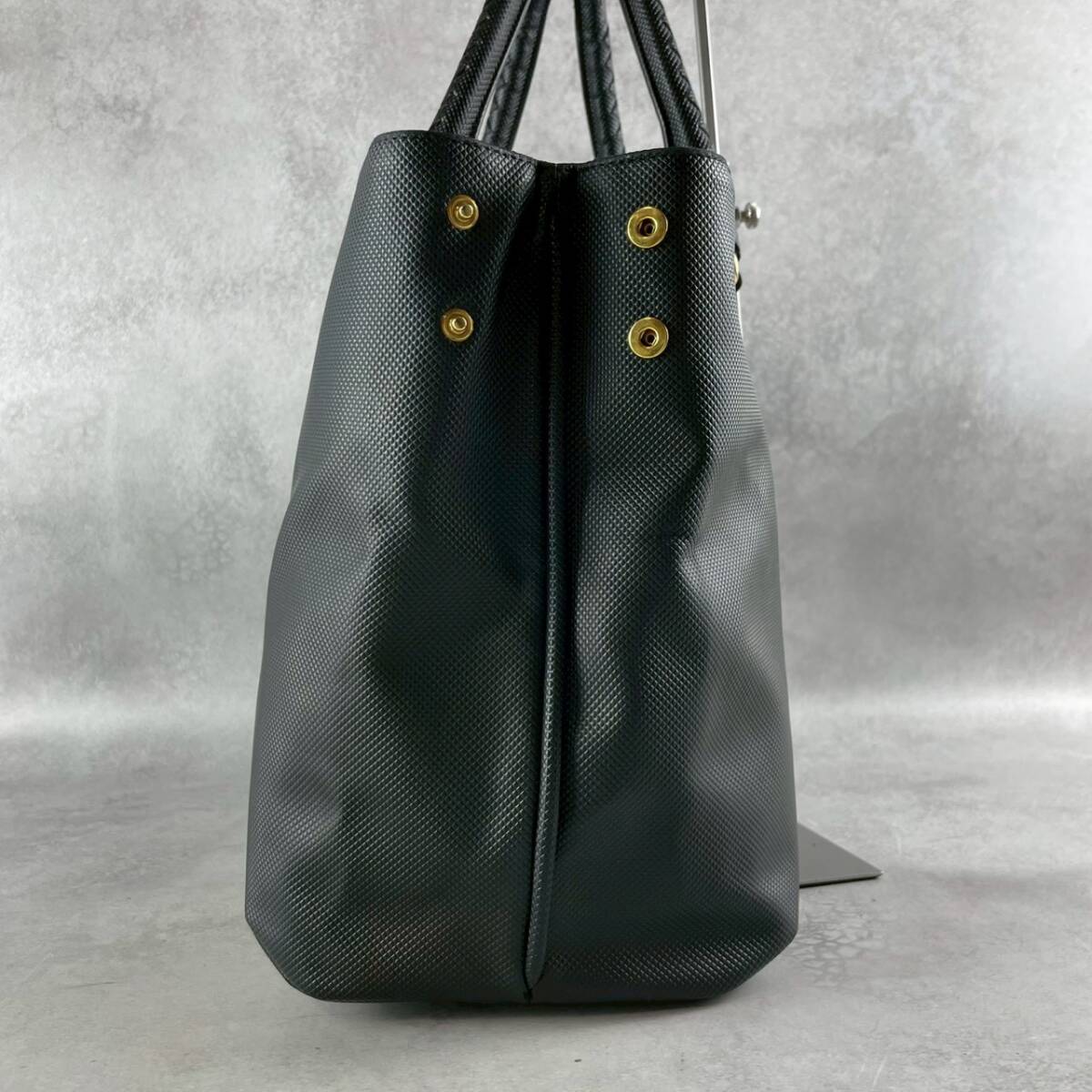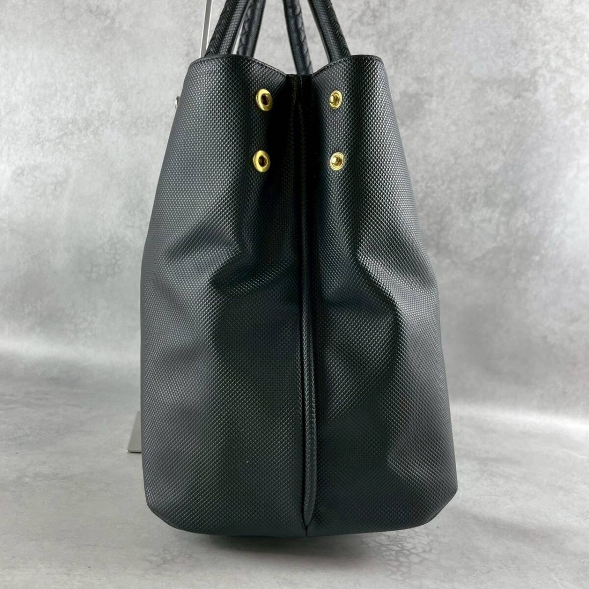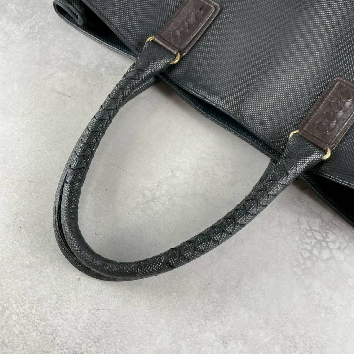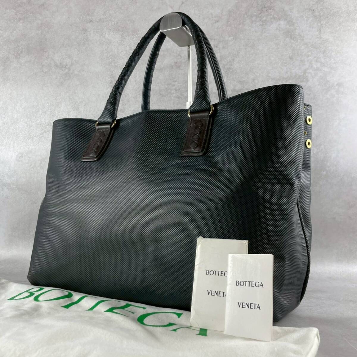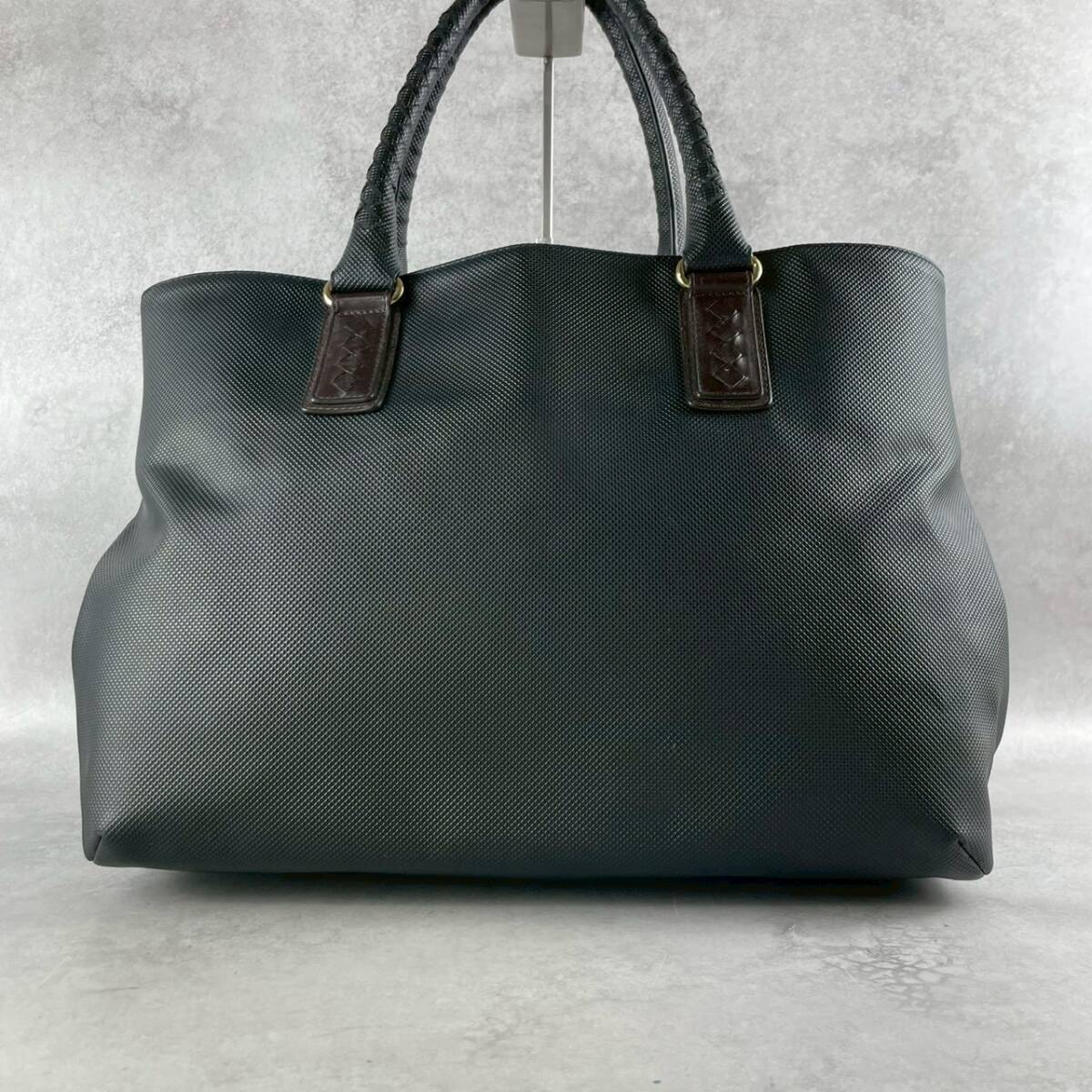 極上美品 BOTTEGA VENETA ボッテガヴェネタ マルコポーロ トートバッグ PVC レザー イントレチャート ビジネス メンズ 肩掛け 黒 ブラック