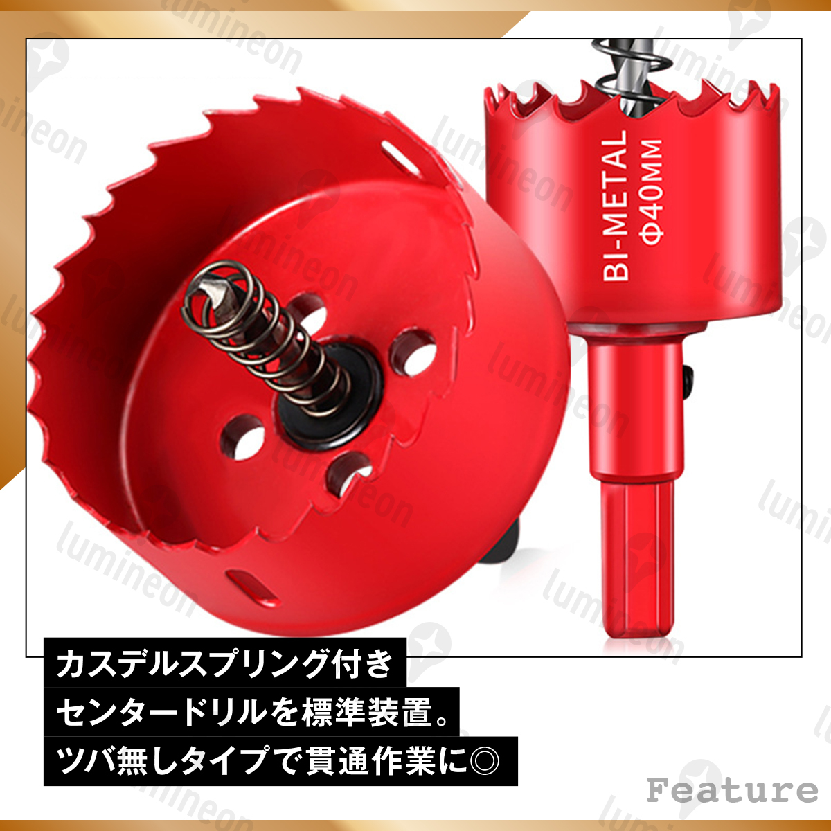 ■木材や石膏ボードから薄い鉄板などさまざまな素材に穴を開けることができるバイメタルホールソー。