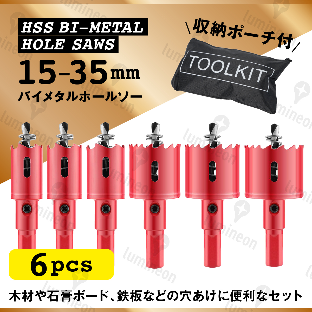 セット,木工用,鉄板用,アルミ板,鉄板,石膏ボード,木材,プラスチック,金属,樹脂,切削,ホールソーセット,バイメタルホルソー,電動ドリル,バイメタルホールソー,電気ドリル,先端工具,ハンドツールセット,DIY,木工,インパクト,g195e2