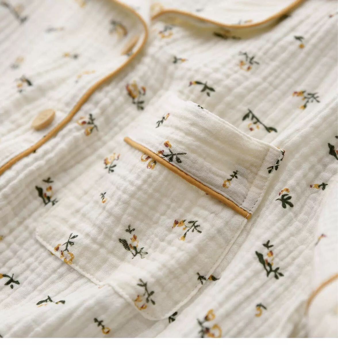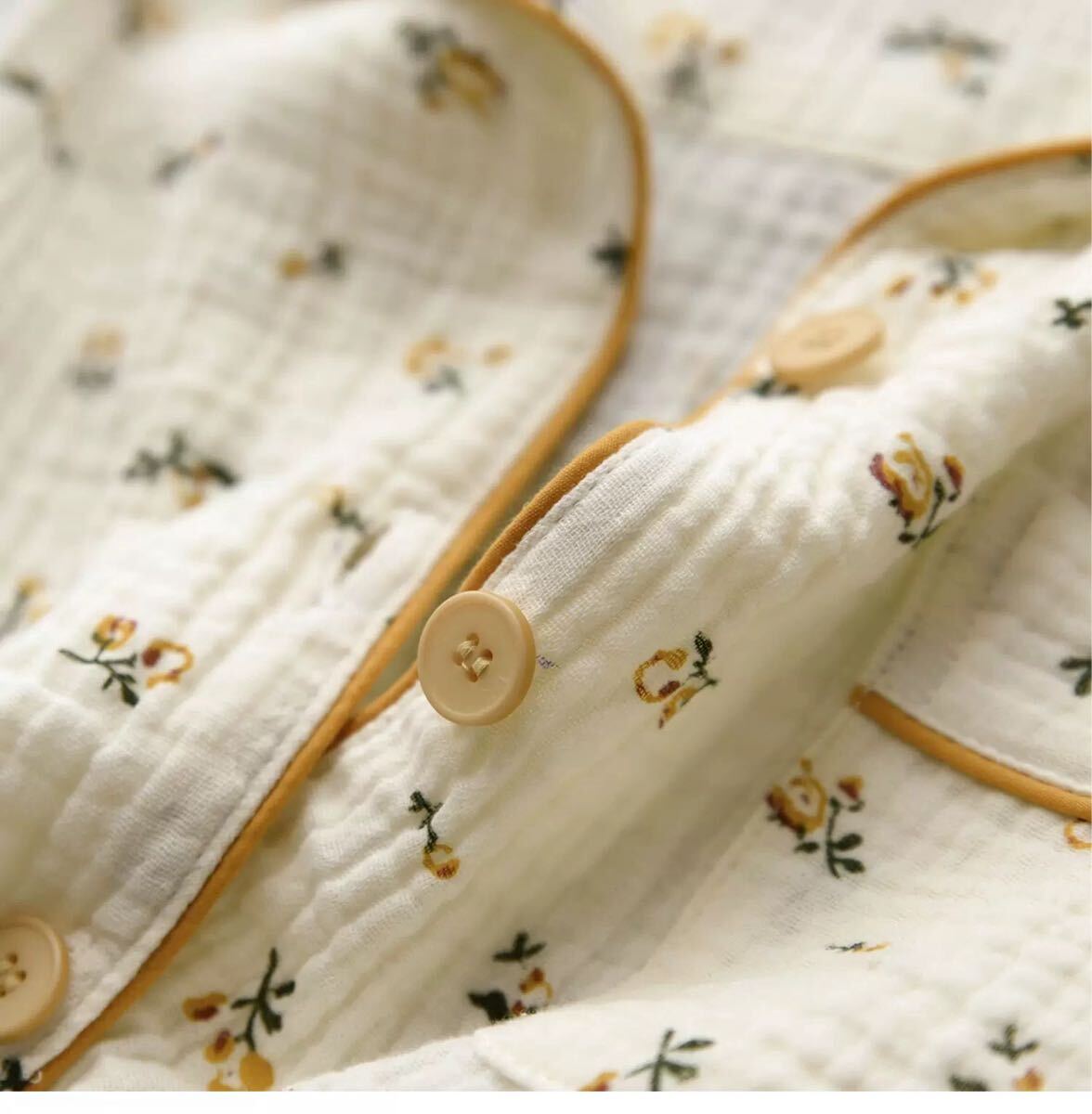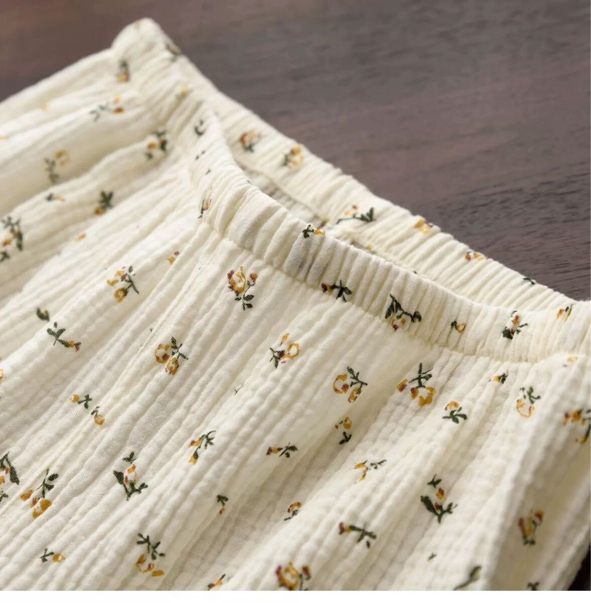 【ダブルガーゼ】薄い綿のガーゼを2枚合わせにした生地のことをいいます。生地と生地の間に空気の層ができることにより、保温性もあり寝冷え対策に適した素材です。