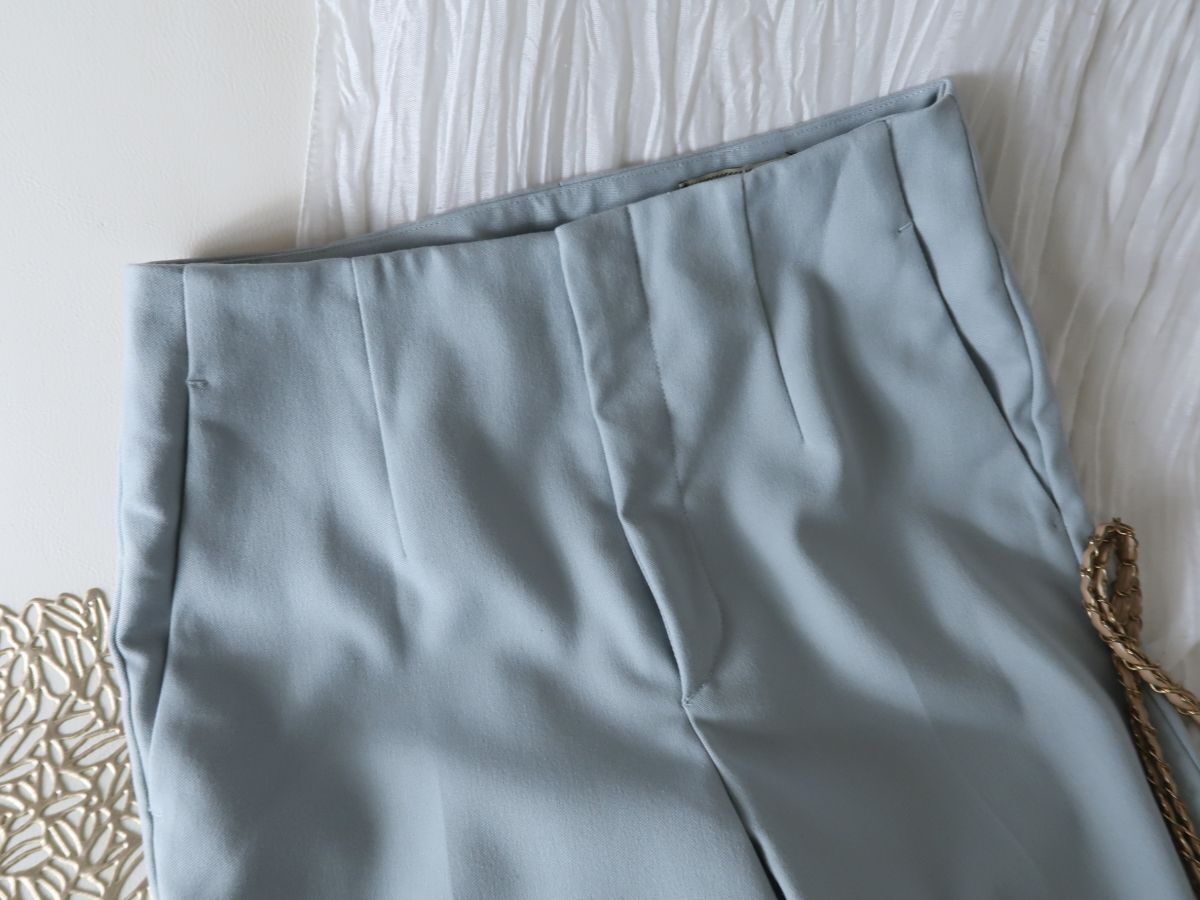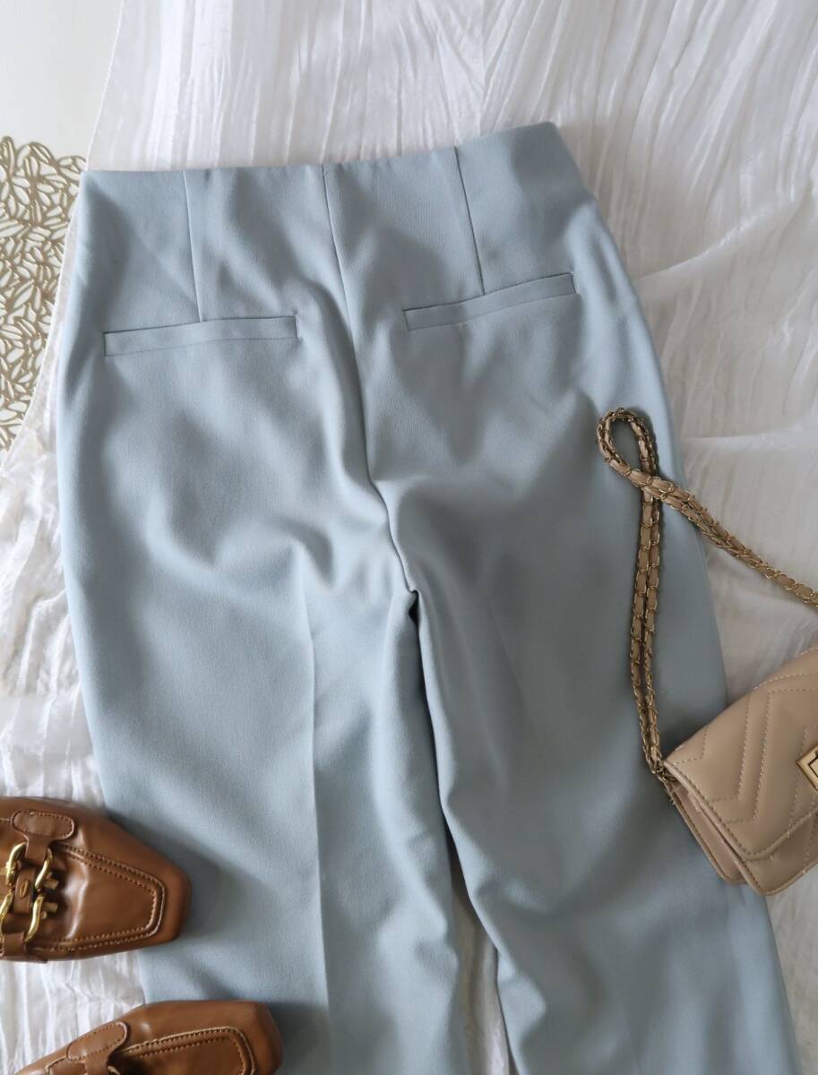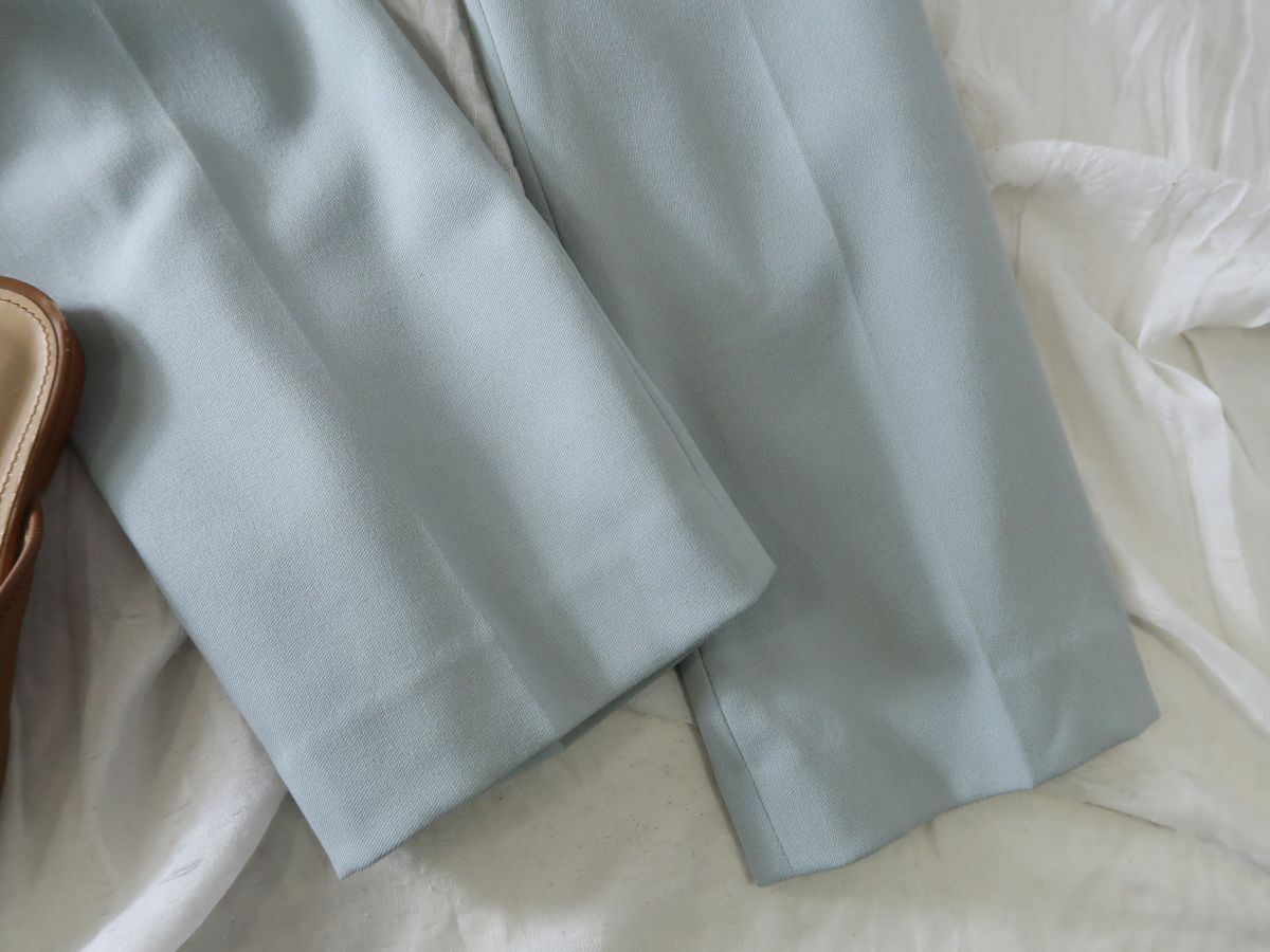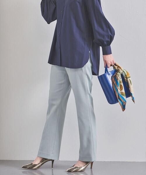 ポリエステルウールの混紡糸を使用した立体的な表情のある組織は、秋から長期間着用いただける素材感も魅力です。全体的に細めで裾に向けて若干広がるブーツカットシルエット。