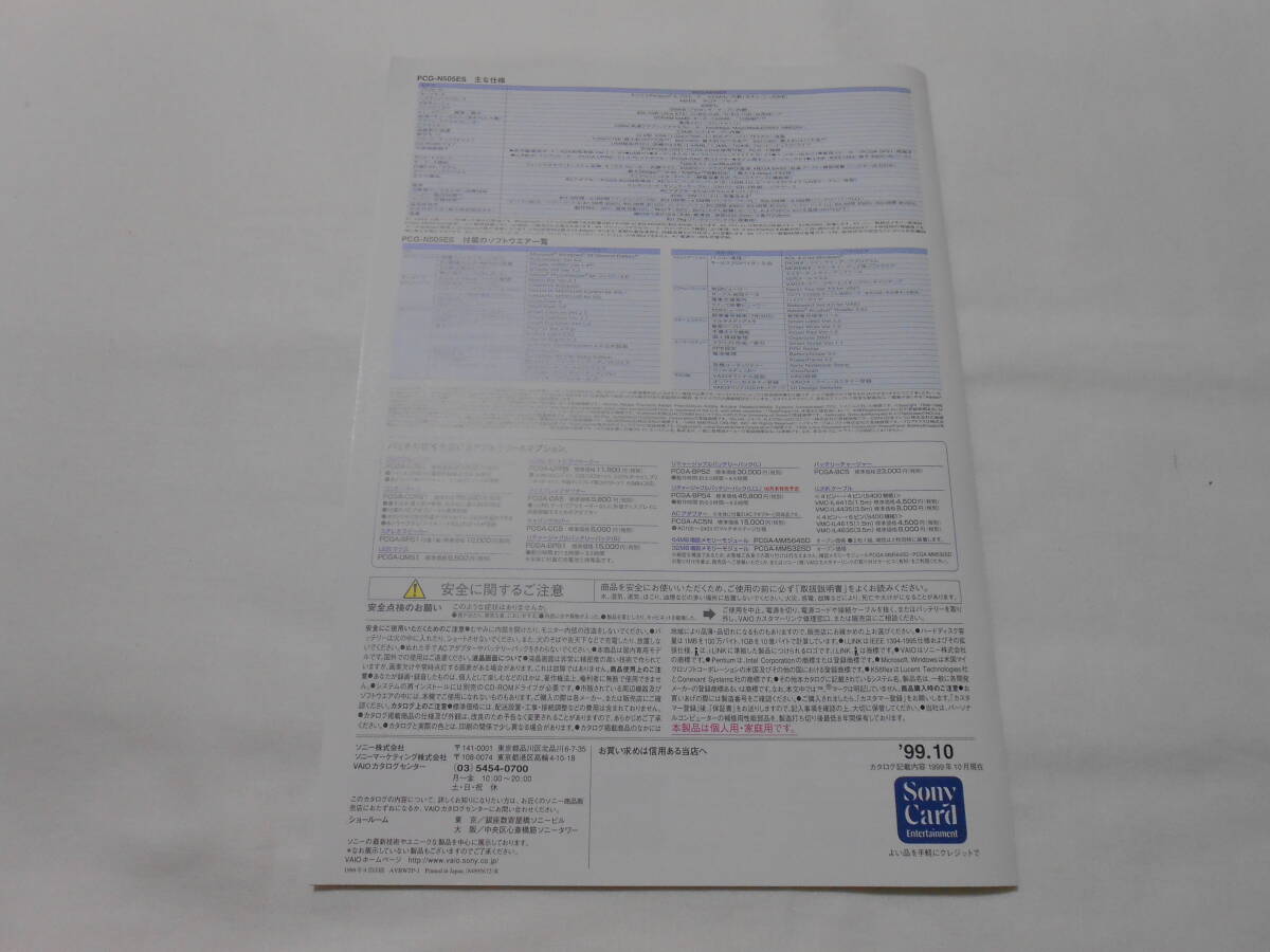 カタログ SONY vaio ソニー バイオ ノートブックコンピューター PCG-N505ES バイオノート 1999年10月 店舗印無し