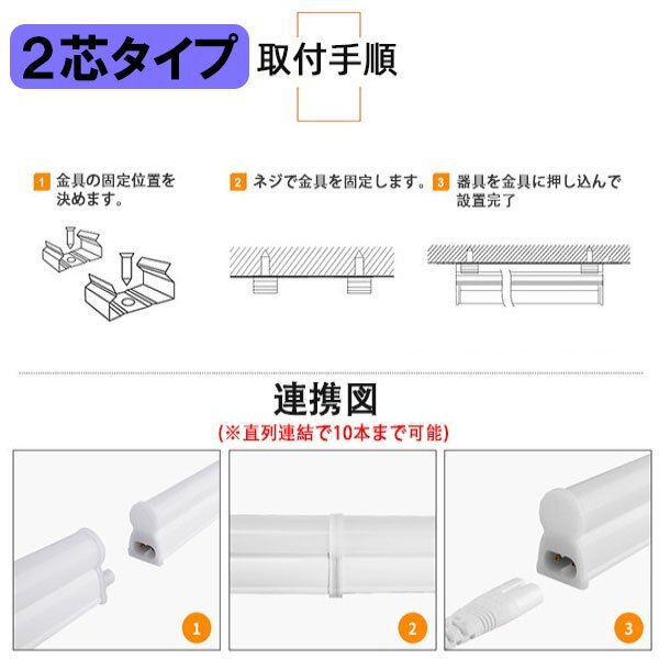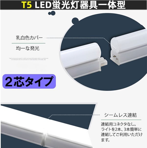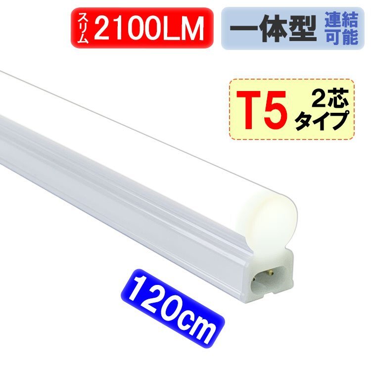 器具一体型 LED蛍光灯 T5 スリムタイプ 直管 40W型 120cm 2100LM 昼白色 LEDベースライト ショーケース照明 T5-120it-2P