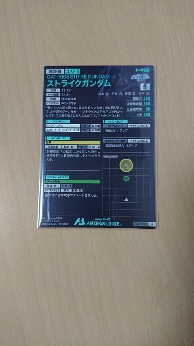 ガンダムアーセナルベース、Mレア、ストライクガンダムの出品となります。未使用品です。排出後、スリーブに入れて保管していますが初期キズなど気になさる方はご遠慮ください。配送料金は梱包代込みで全国一律、120円とさせていただきます。他の出品との同梱は対応いたします。ノークレム、ノーリターンにてお願いいたします。