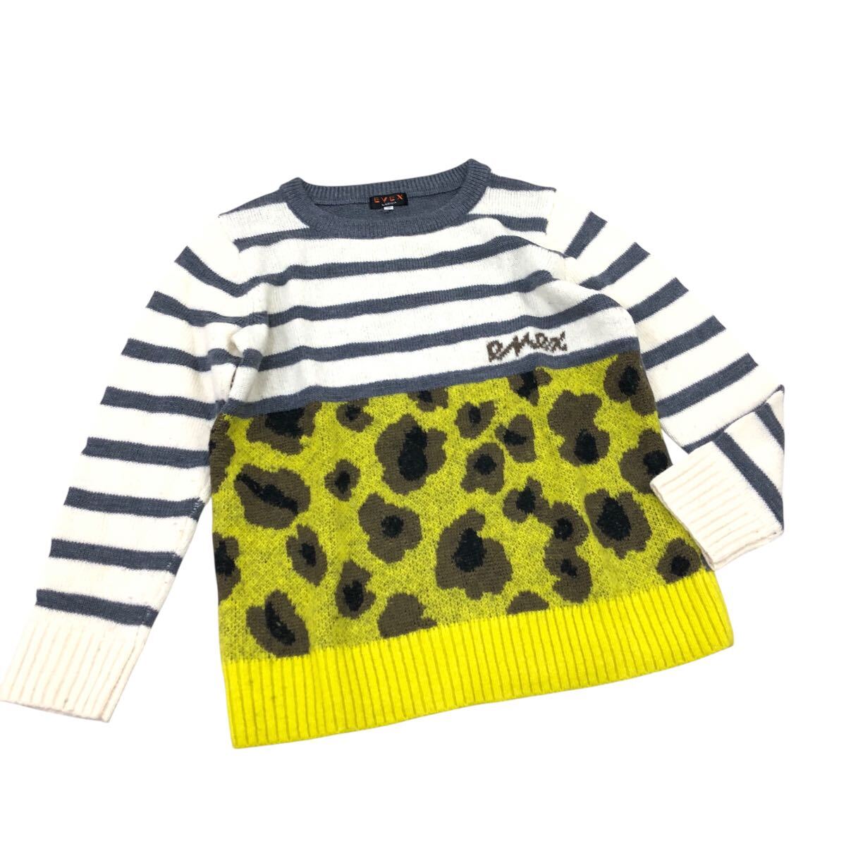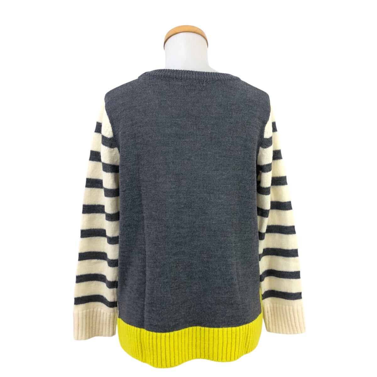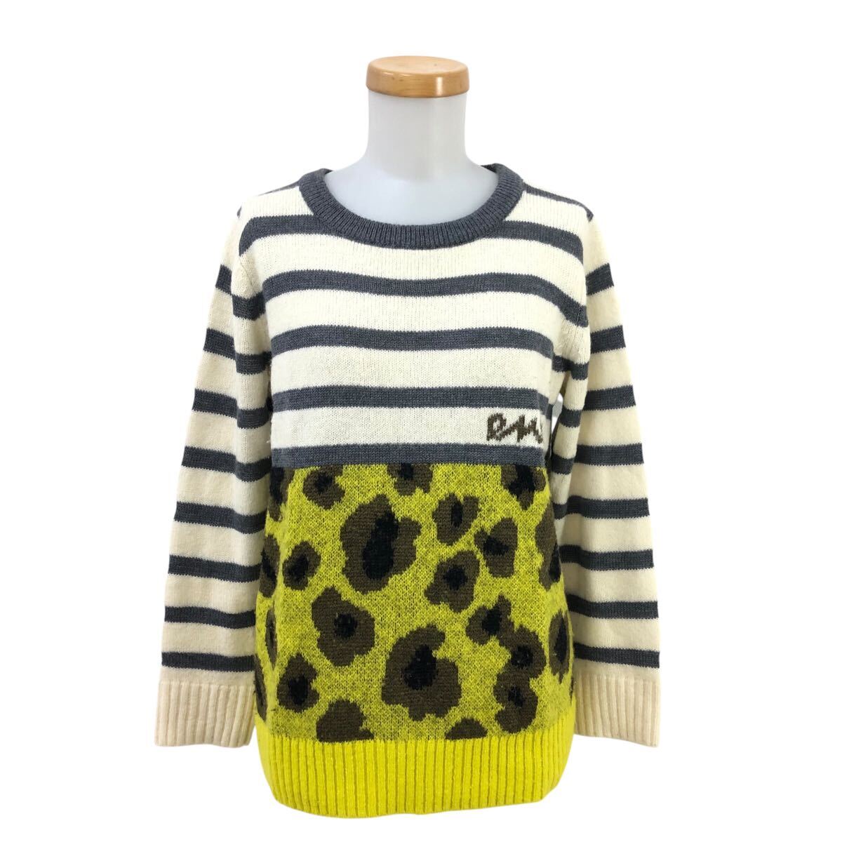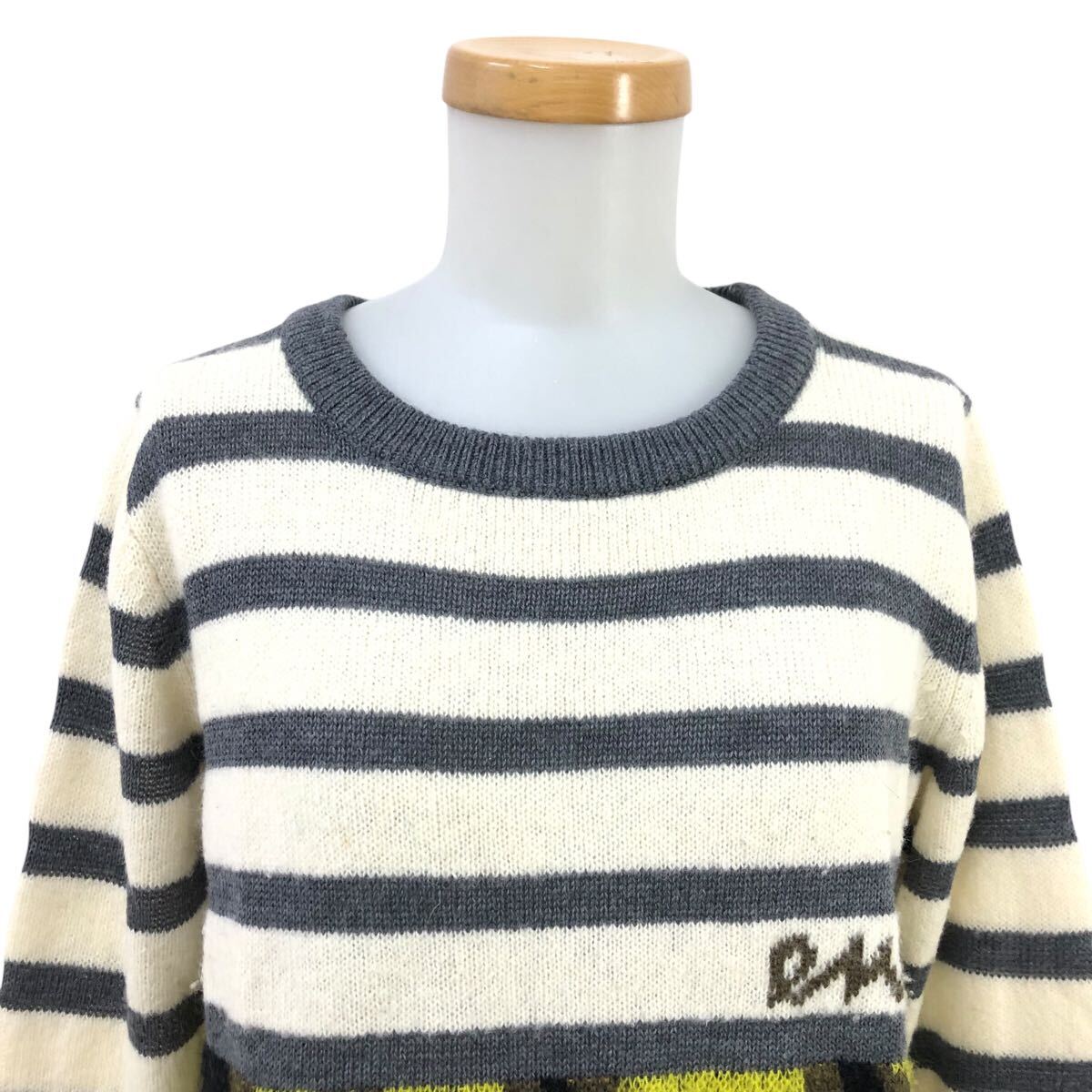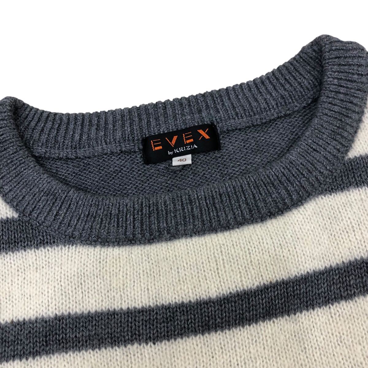 10Nm327-9 EVEX by KRIZIA エヴェックス バイ クリツィア アルパカ混 ボーダー 配色 総柄 長袖ニット セーター トップス オフホワイト系 40
