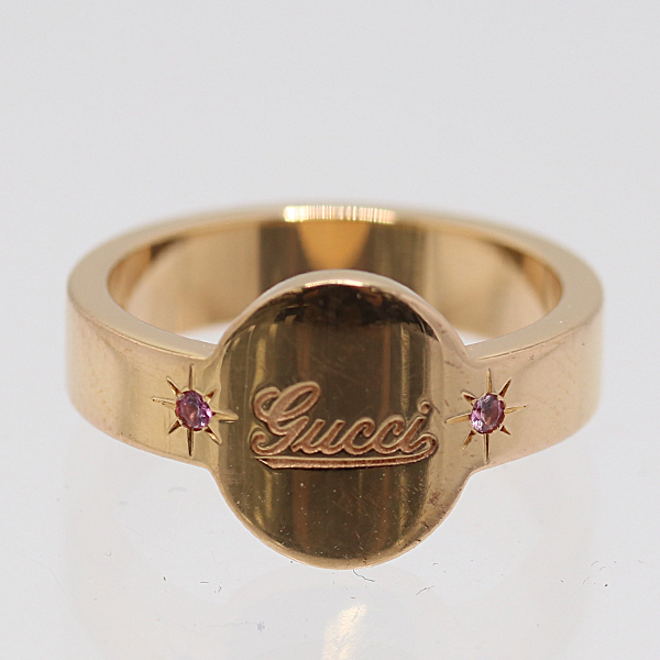 1円 美品 グッチ 750PG リング ピンクサファイア 5.2g アイコンプリント アクセサリー ジュエリー 0073700 9RKT AKO KMR