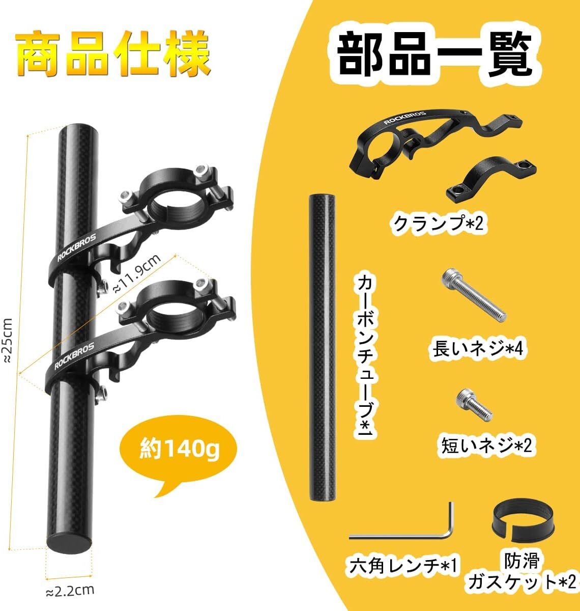25cm 広々スペース ROCKBROS 自転車 ハンドルバー 延長ブラケット エクステンションバー カーボン 軽量 炭素繊維 拡張 自転車