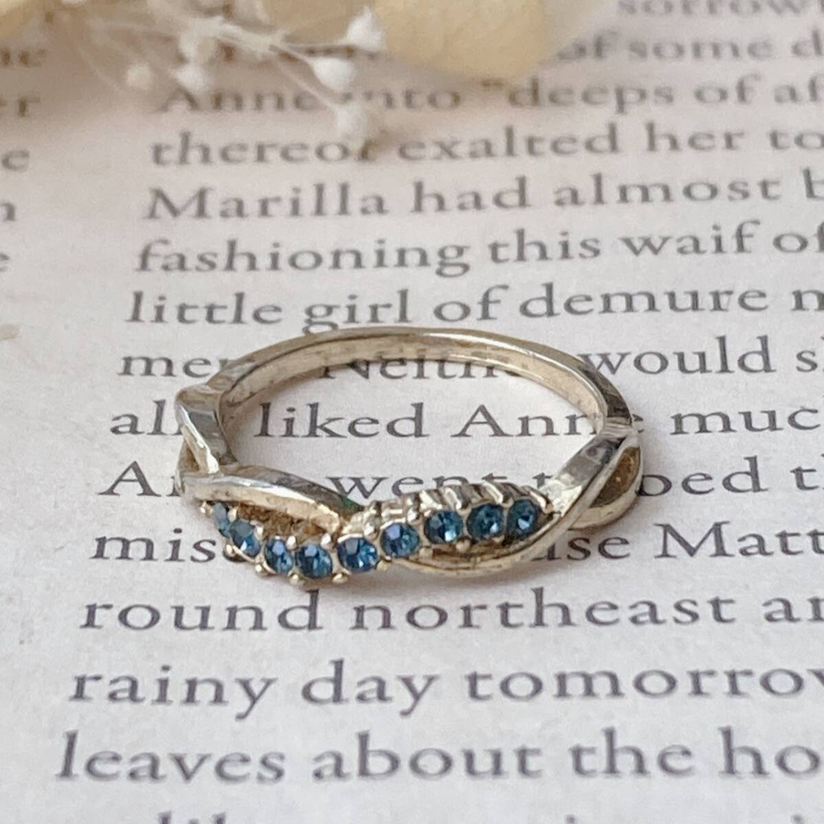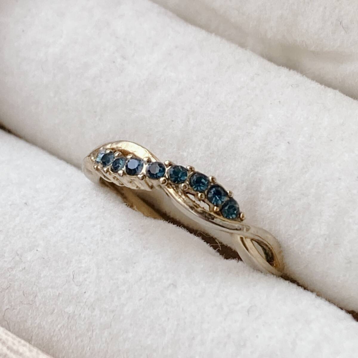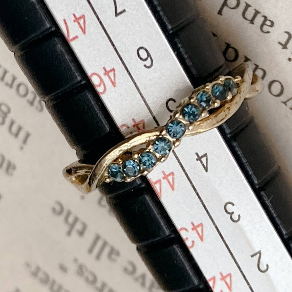 リング ブルーグリーン ストーン ゴールドトーン 5号 小さい ウェーブ デザインリング☆vintage jewelry accessories F0272