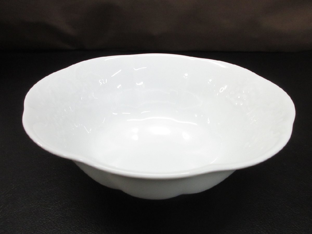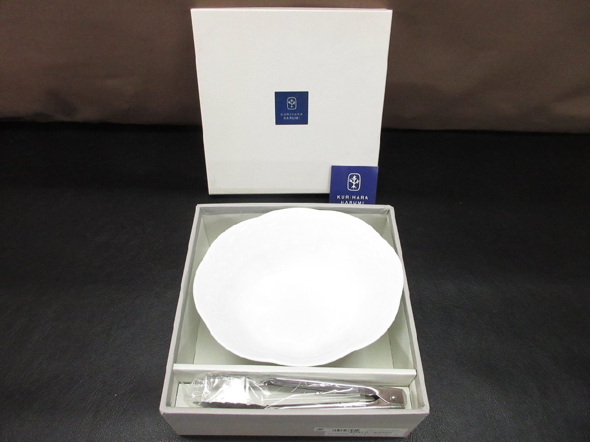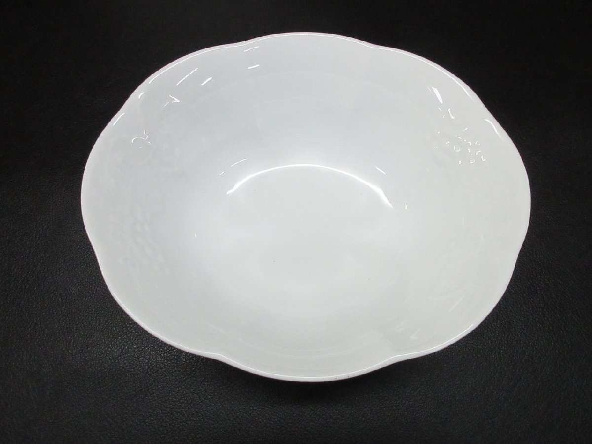 【T2-7730】即決 未使用 栗原はるみ 深皿 シンプル NARUMI ぶどう ホワイト系 トング付サラダボウル 東京引取可【千円市場】