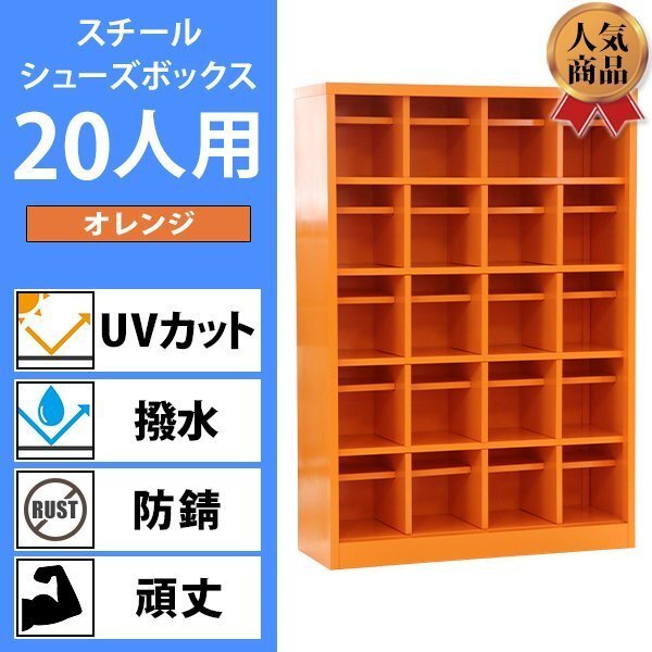 商品名 | 送料無料 ロッカー おしゃれ スチール シューズボックス 20人用 オレンジ オープンタイプ 棚板付き 扉なし 4列5段 UVカット 撥水 防錆 頑丈 シューズロッカー シューズラック スリム 更衣ロッカー 靴箱 下駄箱 棚 物置 屋外 中棚 運動場 プール sy2020a |