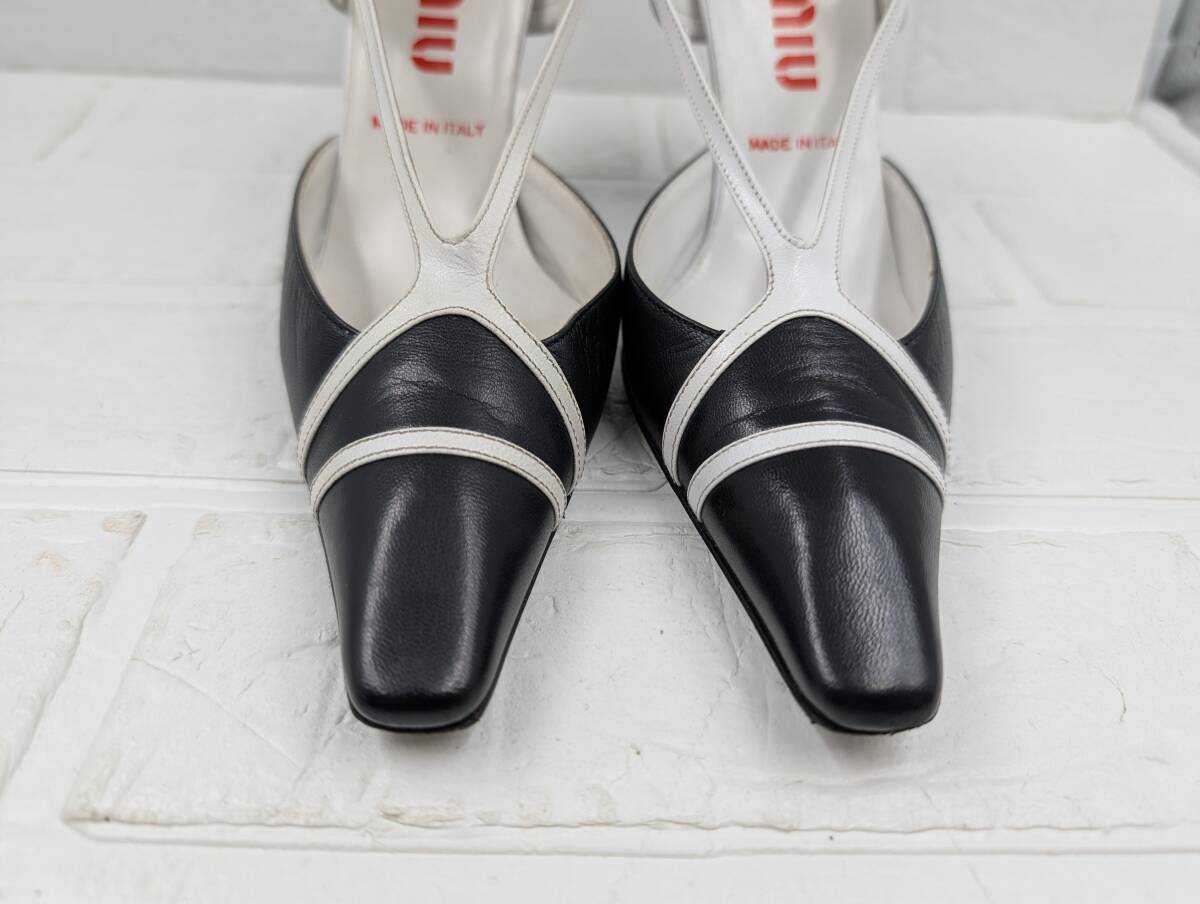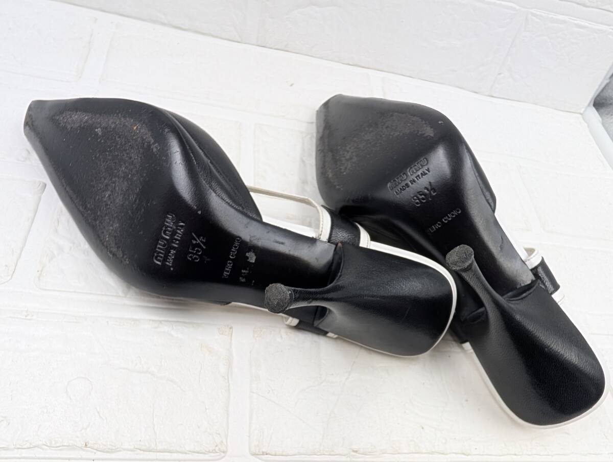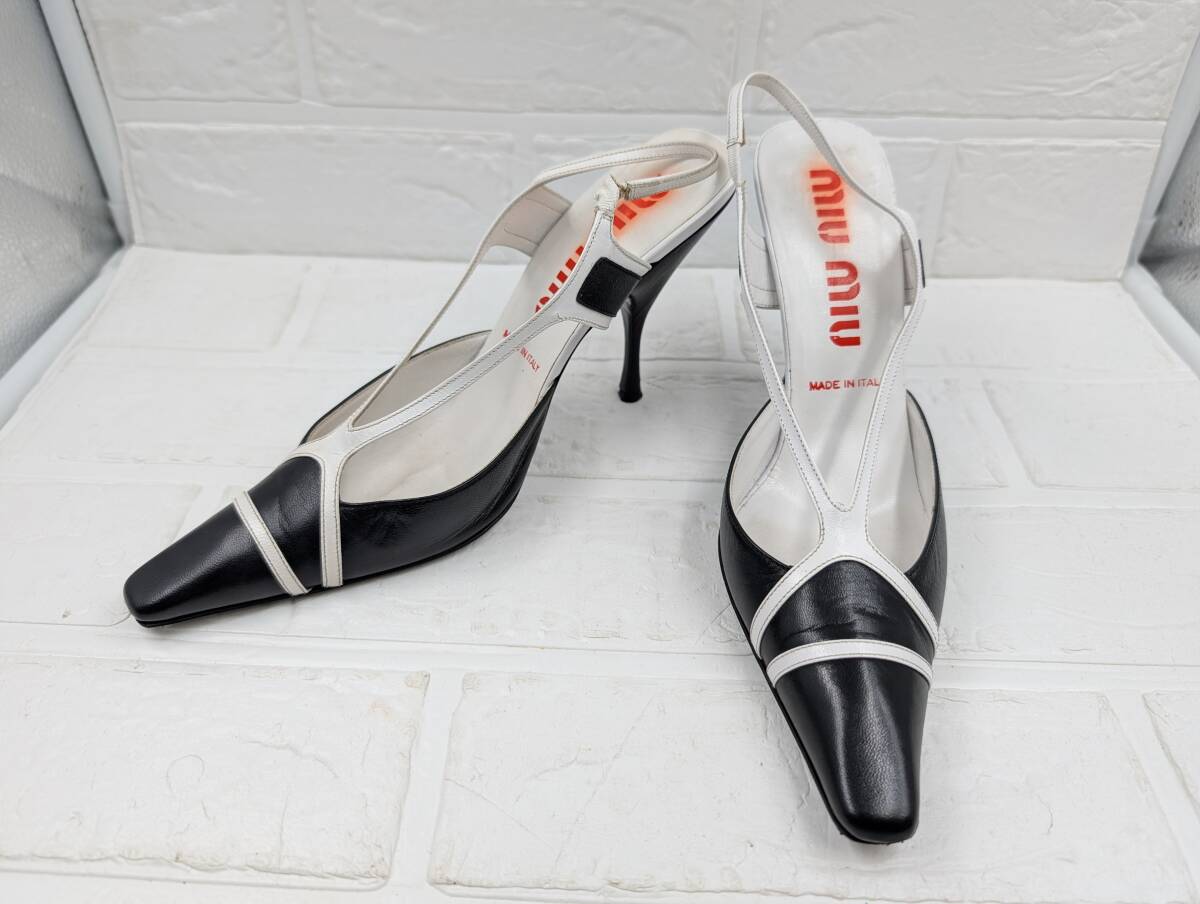 1000円~★ ミュウミュウ miumiu バイカラー ヒール サンダル 35 1/2 23cm ブラック×ホワイト ★ レディース 靴