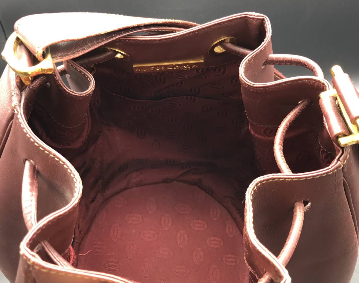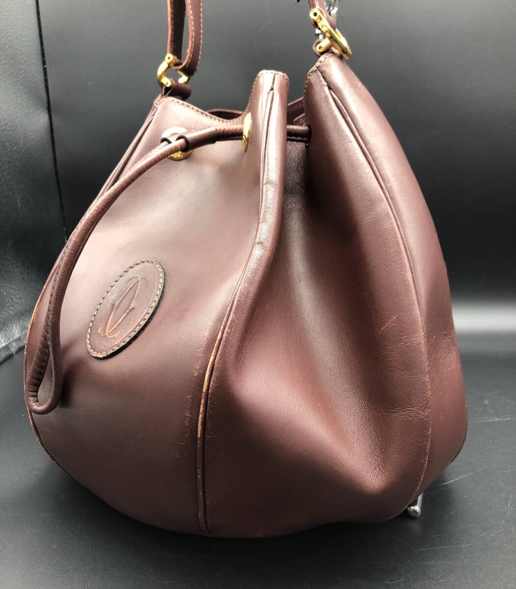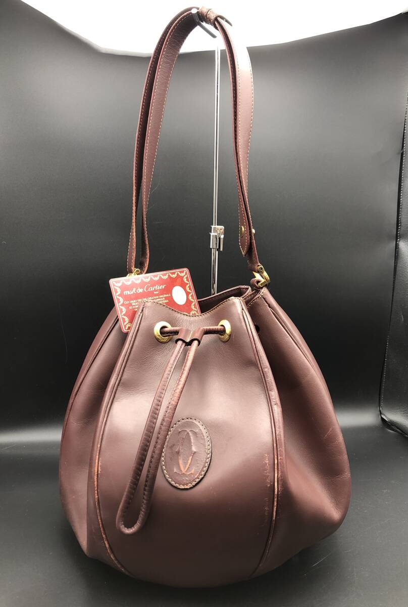 【ブランドetc】※100※【MALM-24】●カルティエ・巾着型 レザー ショルダーバッグ●ギャランティカード付き●