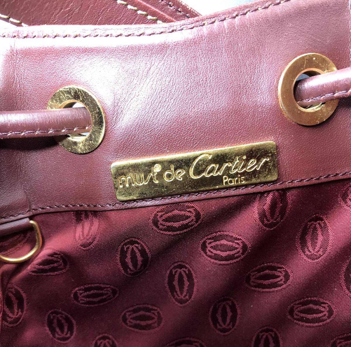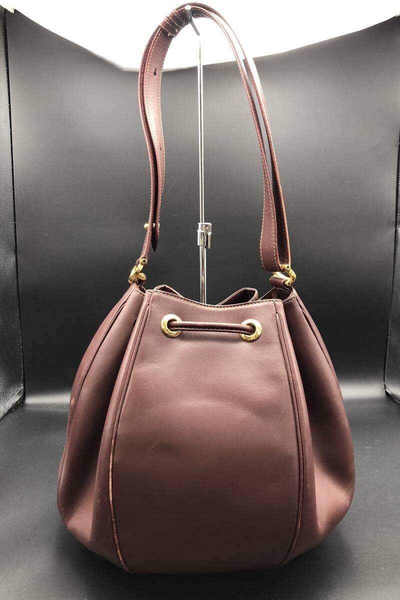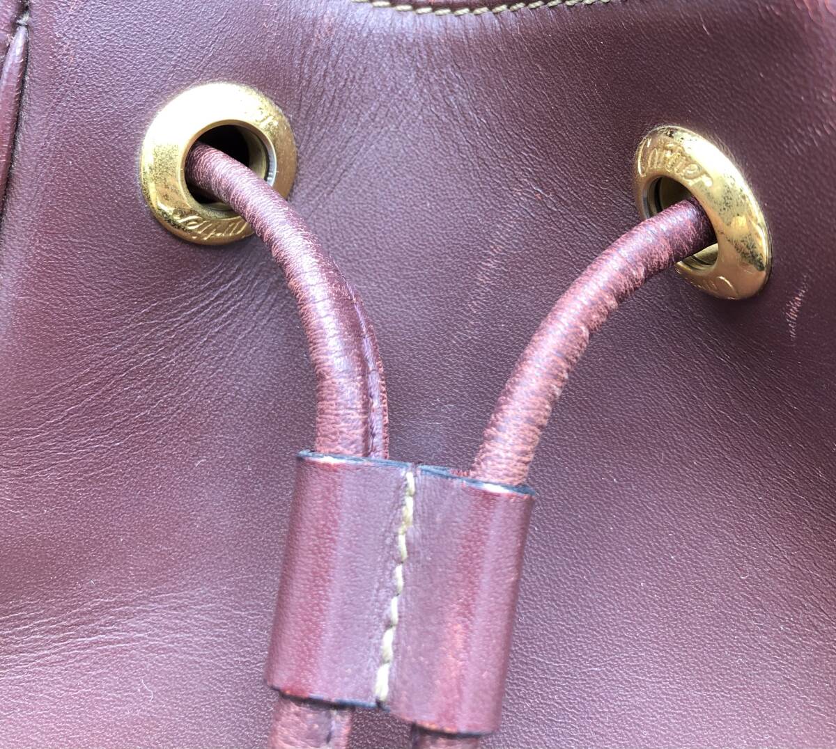 【ブランドetc】※100※【MALM-24】●カルティエ・巾着型 レザー ショルダーバッグ●ギャランティカード付き●