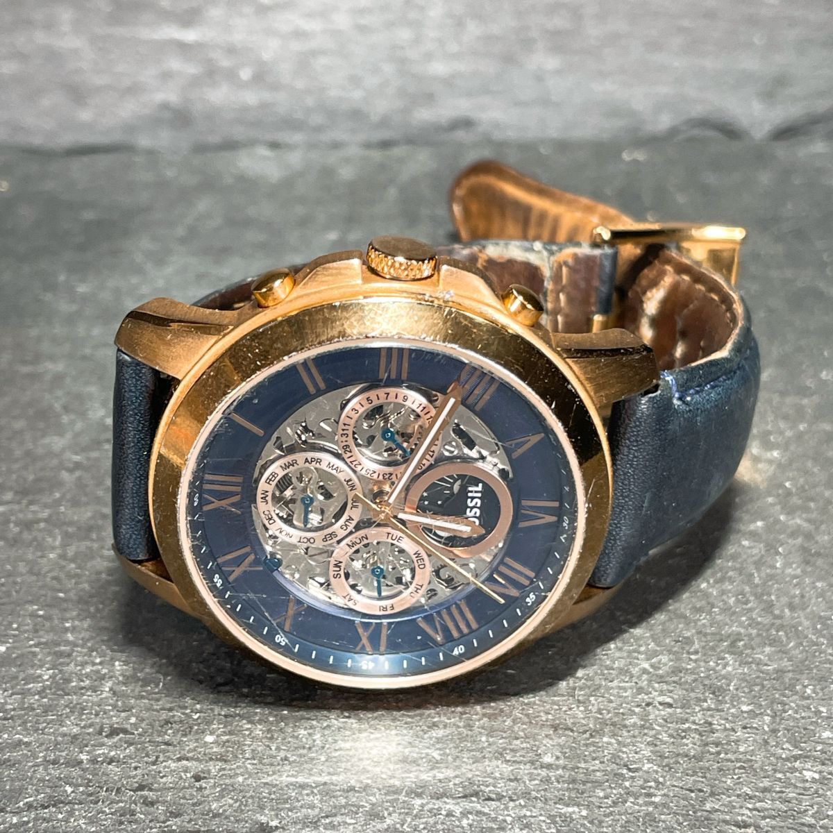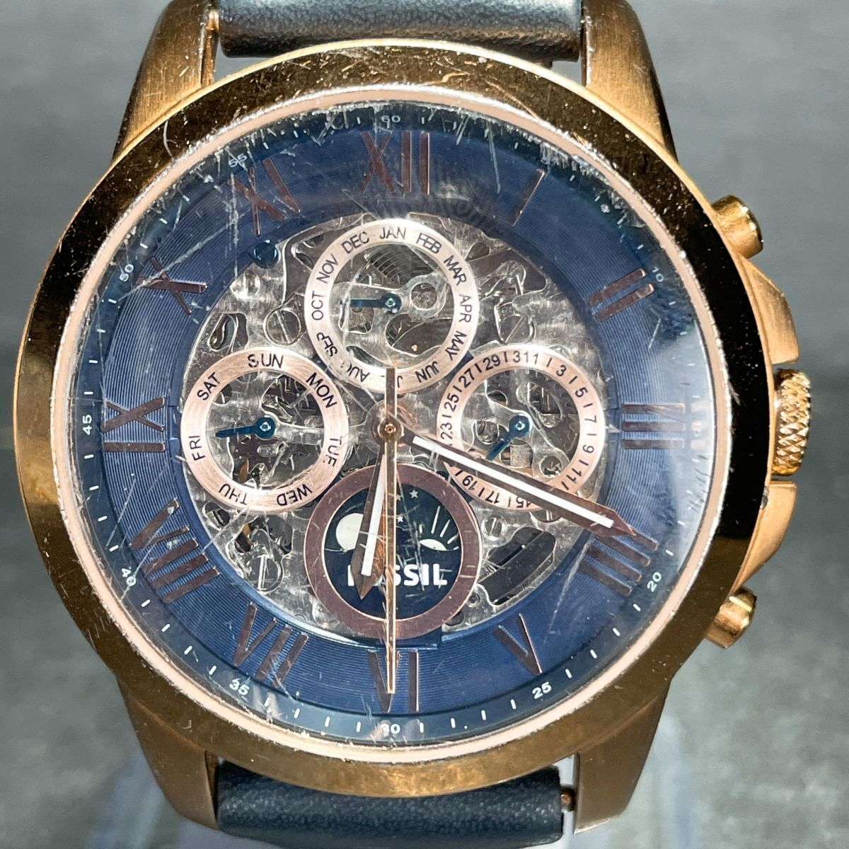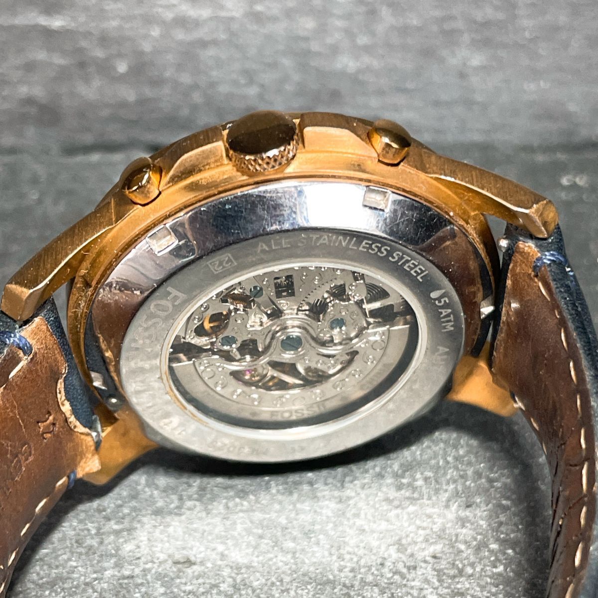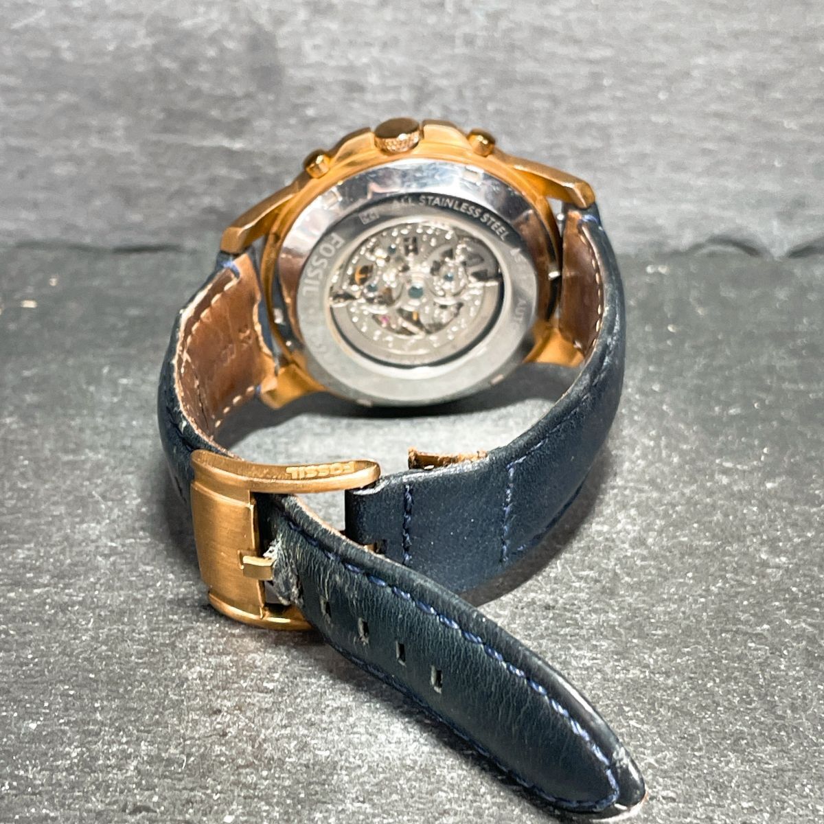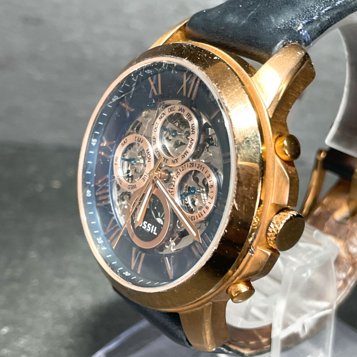 FOSSIL フォッシル ME3029 腕時計 アナログ 自動巻き スケルトン マルチファンクション レザーバンド ブラック ゴールド 動作確認済み