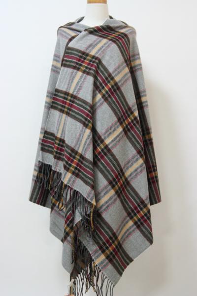 送料無料◆Lune jumelleチェック柄◆厚手大判ショール&ひざ掛け(グレー)343