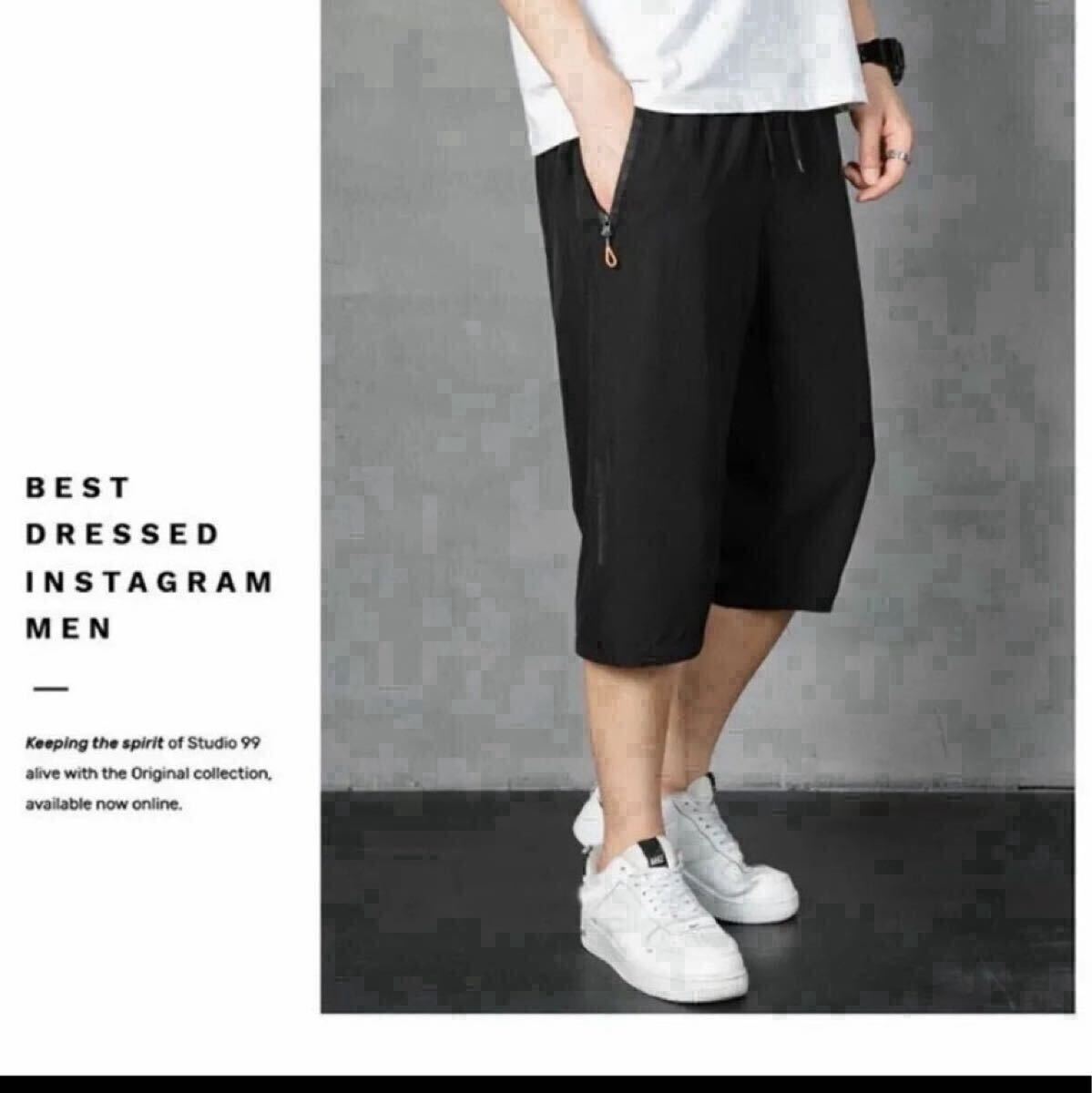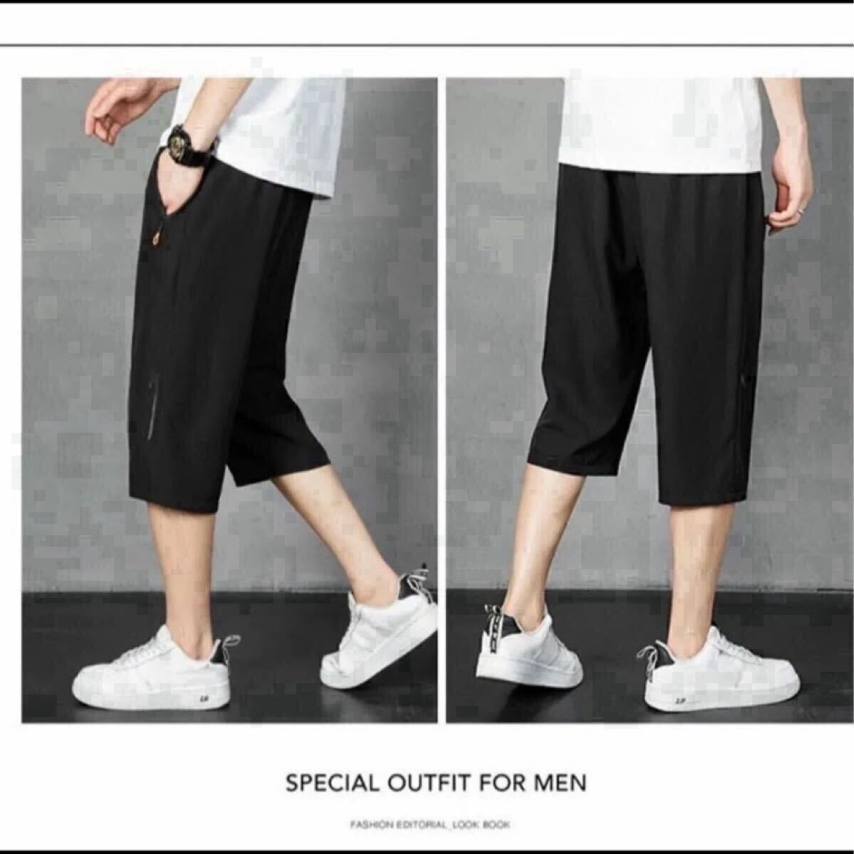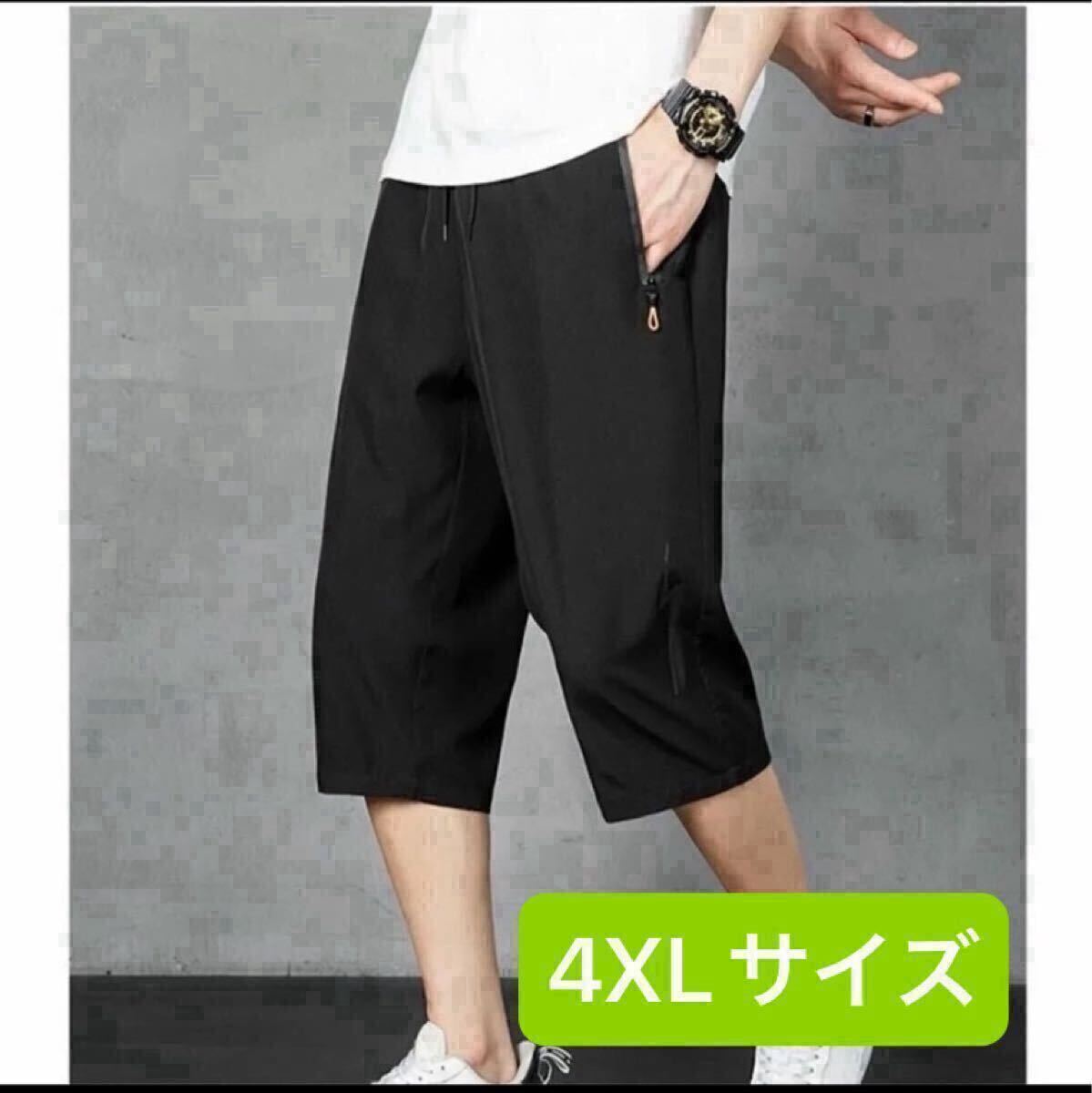 ハーフパンツ 7分丈 短パン 夏 ズボン イージーパンツ アイスシルク ブラック 4XL