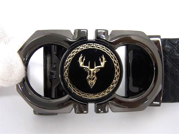 ■極美品■ レザー トナカイ ベルト 表記サイズ 46/115 メンズ レディース ブラック系 DJ1575