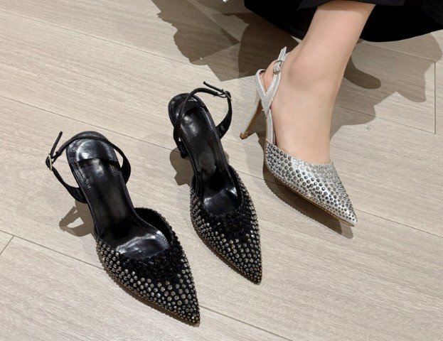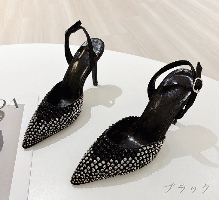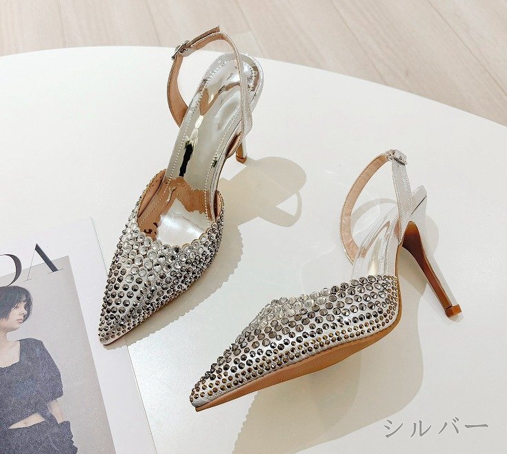 ハイヒールシューズ オフィス とんがりトゥ ピンヒール ラインストーン付 シンプル 【39】24~24.5cm シルバー