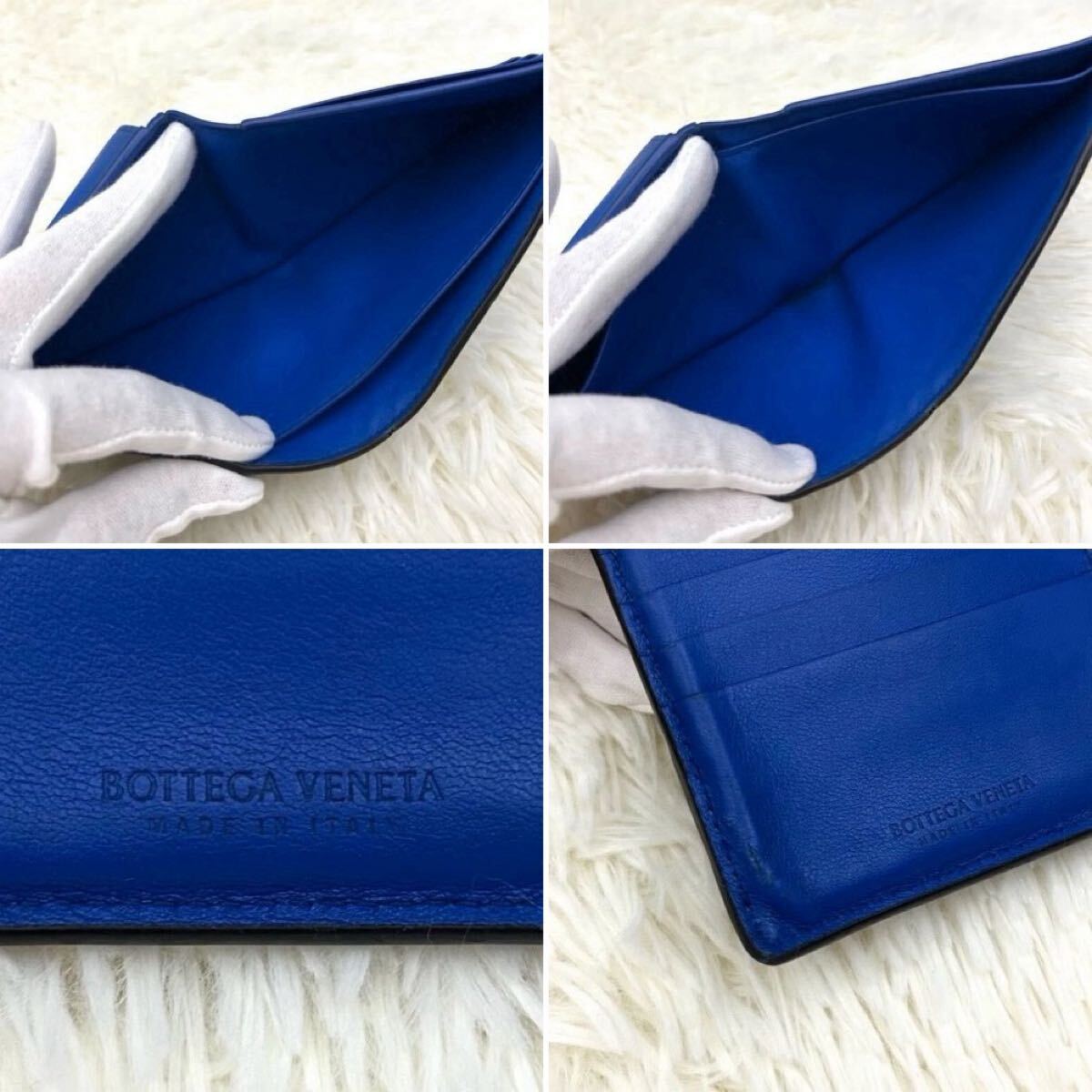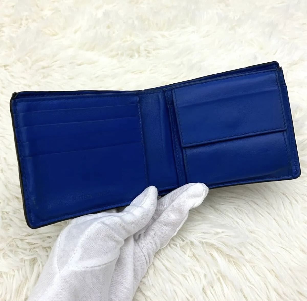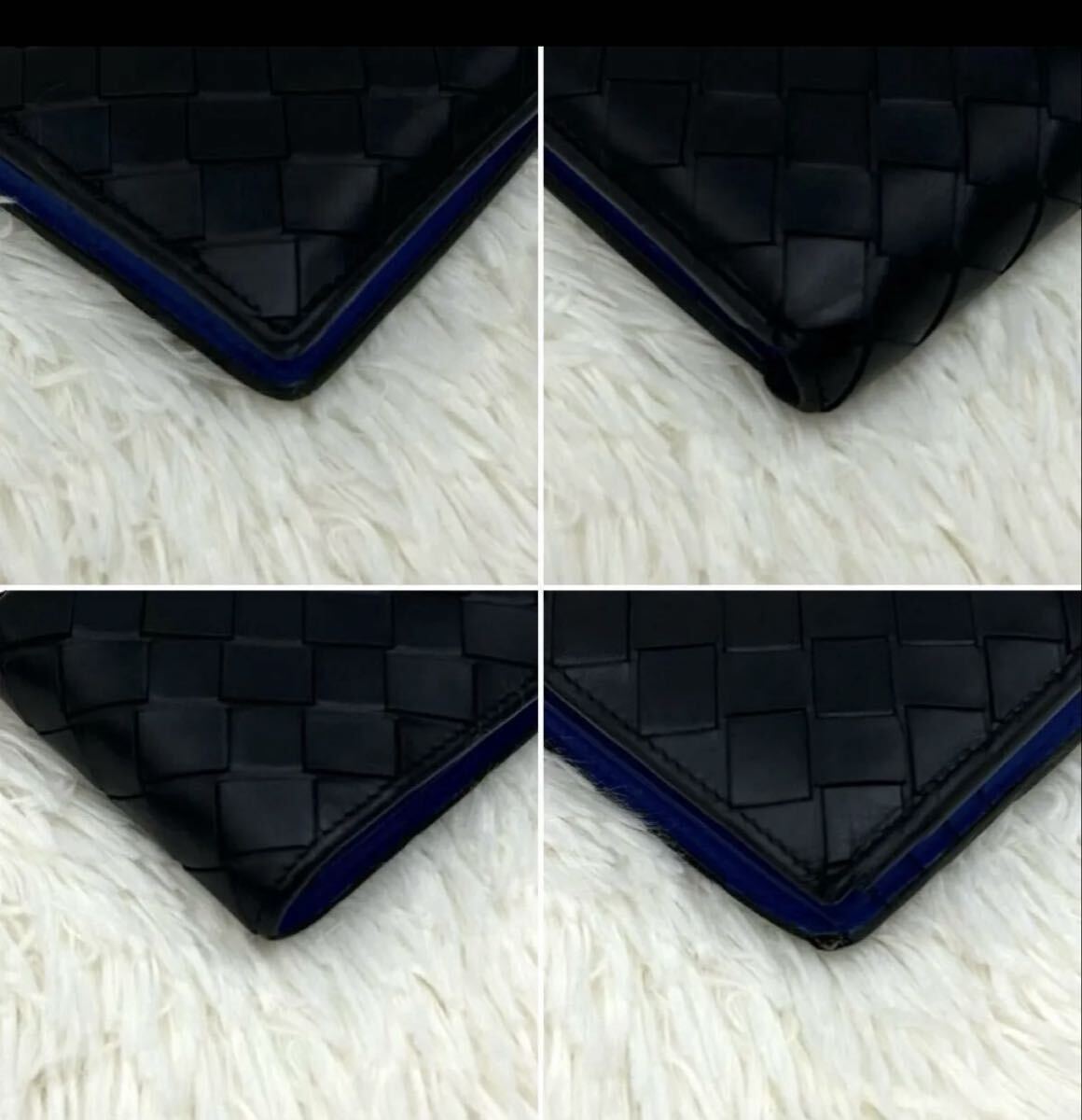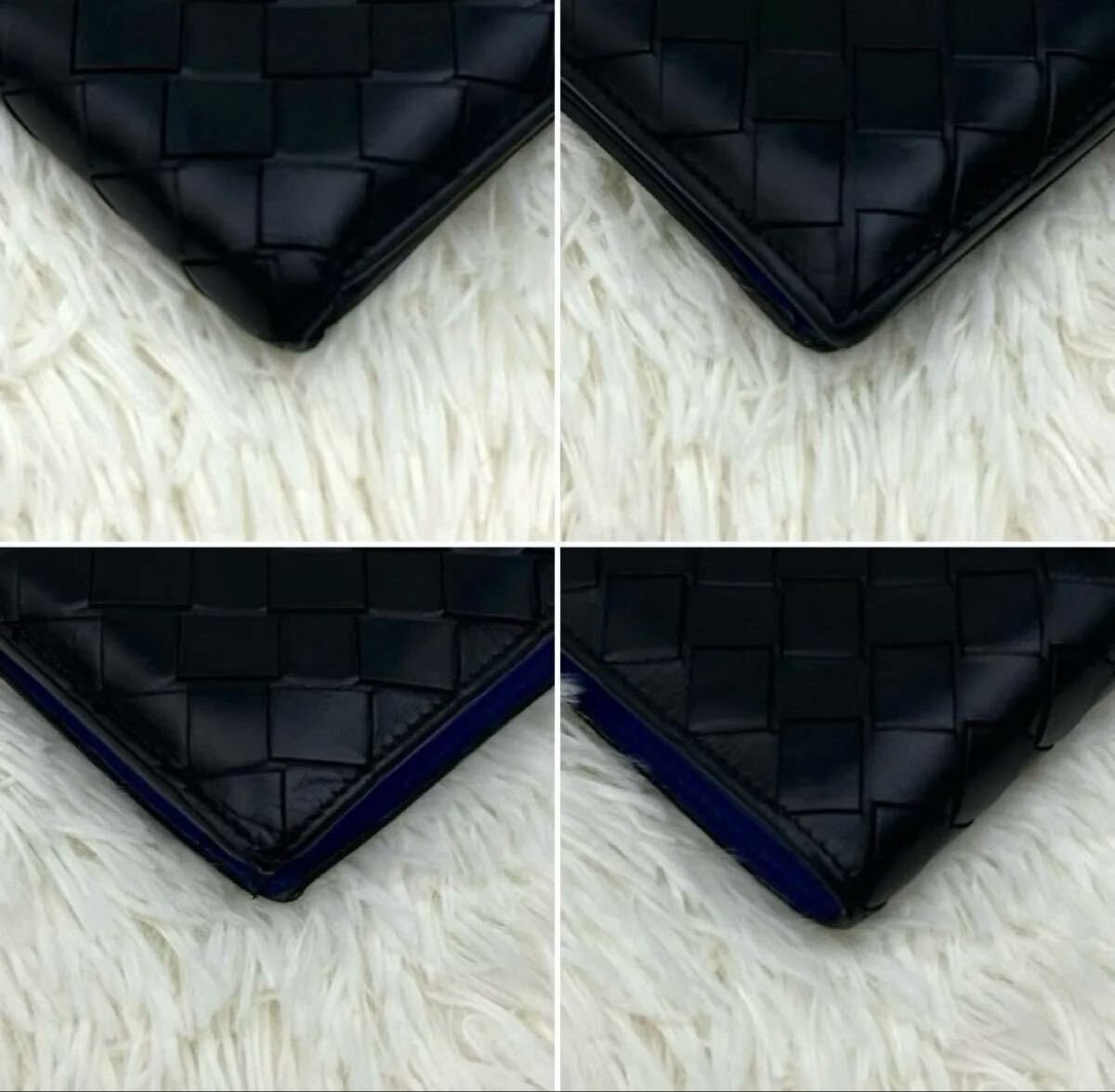 ブラックのイントレチャートレザー二つ折り財布、Bottega Venetaのスタイリッシュなデザイン。
