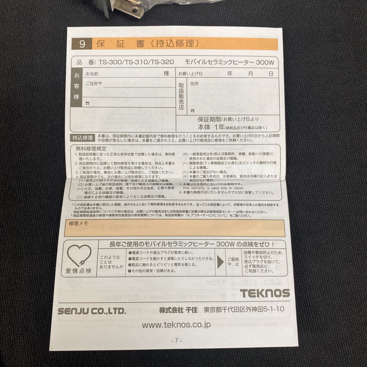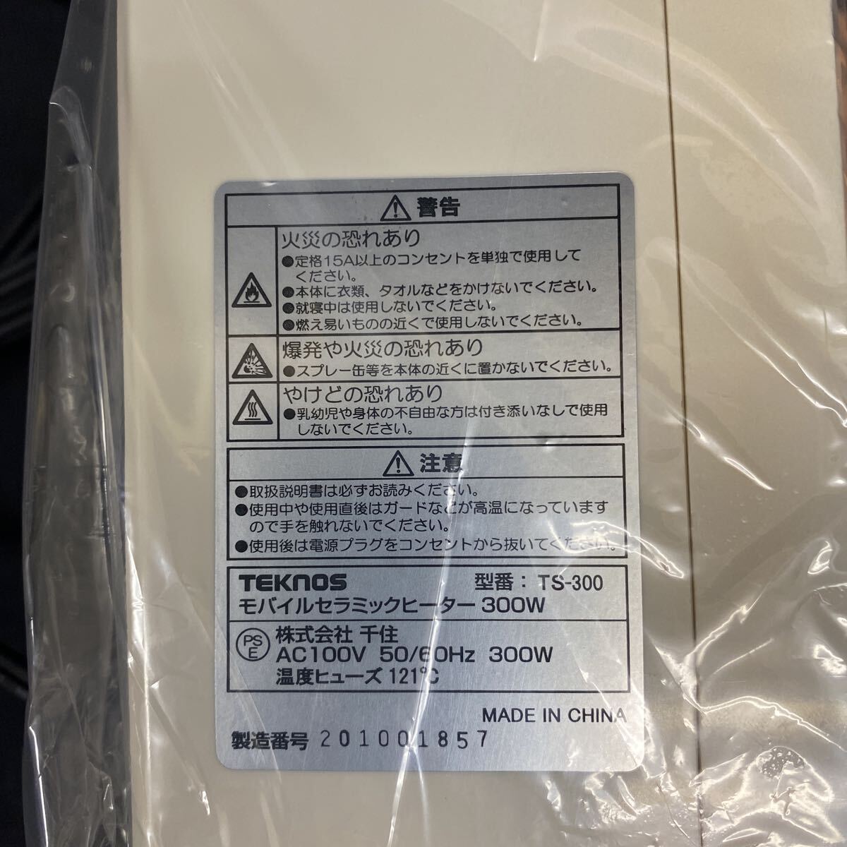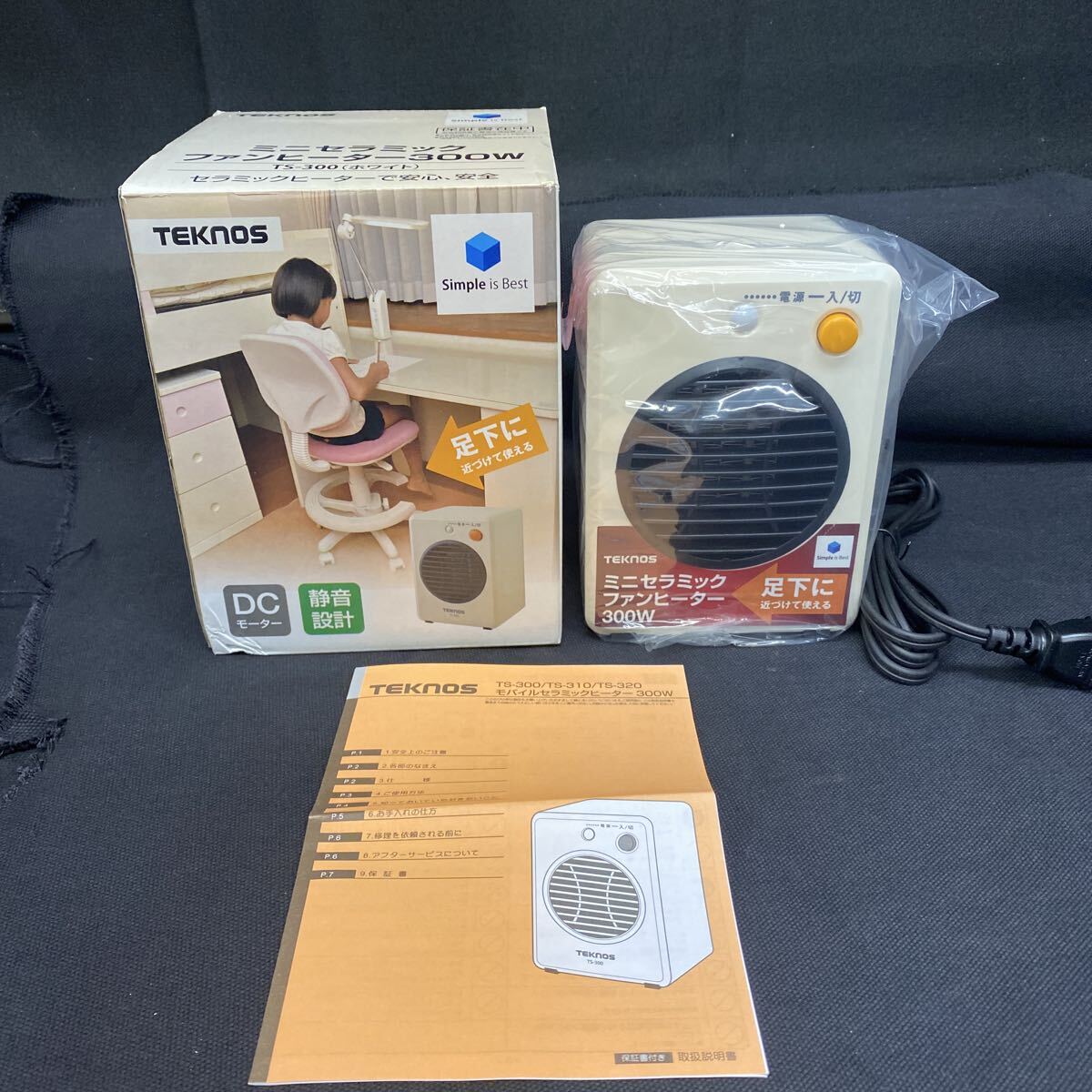 TEKNOS テクノス ミニセラミックヒーター 300W TS-300(ホワイト) DCモーター外箱、取説付きになります。