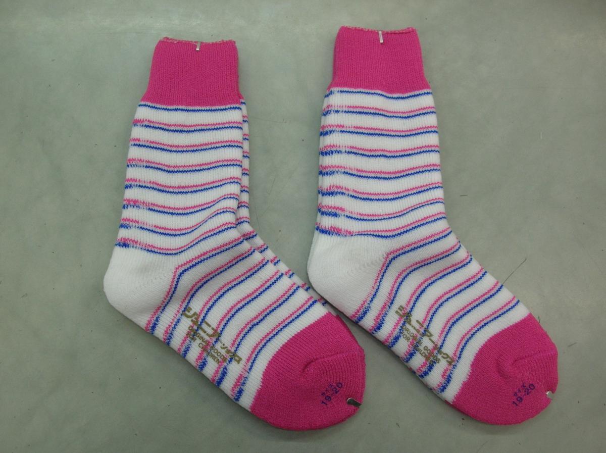 【スキーソックス2足組★ジュニア★19~20cm】★ホワイト×ピンク×ネイビー★裏パイル地で伸び伸び温か