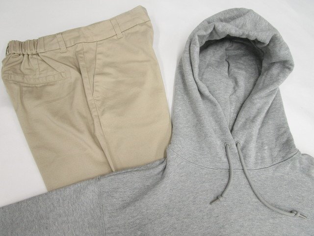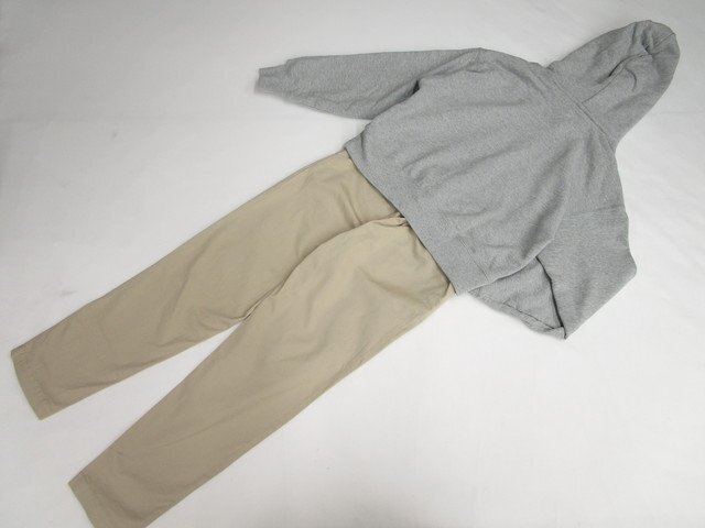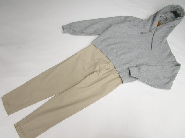 洗える長袖プルオーバーパーカー+チノスキニーパンツ コーディネート上下2点セット SS相当 グレー/ベージュ カジュアル系 20代
