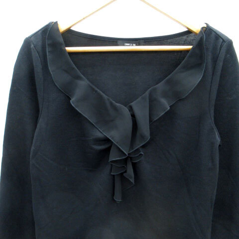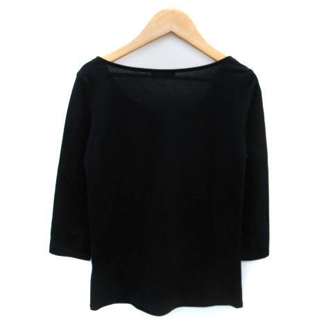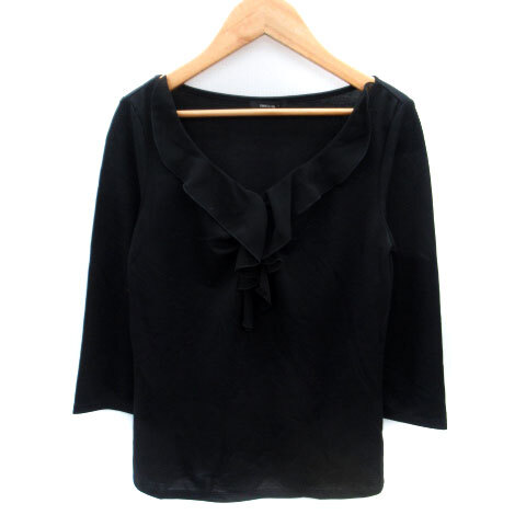 コムサイズム COMME CA ISM Tシャツ カットソー 七分袖 フリル M 黒 ブラック /SM23 レディース